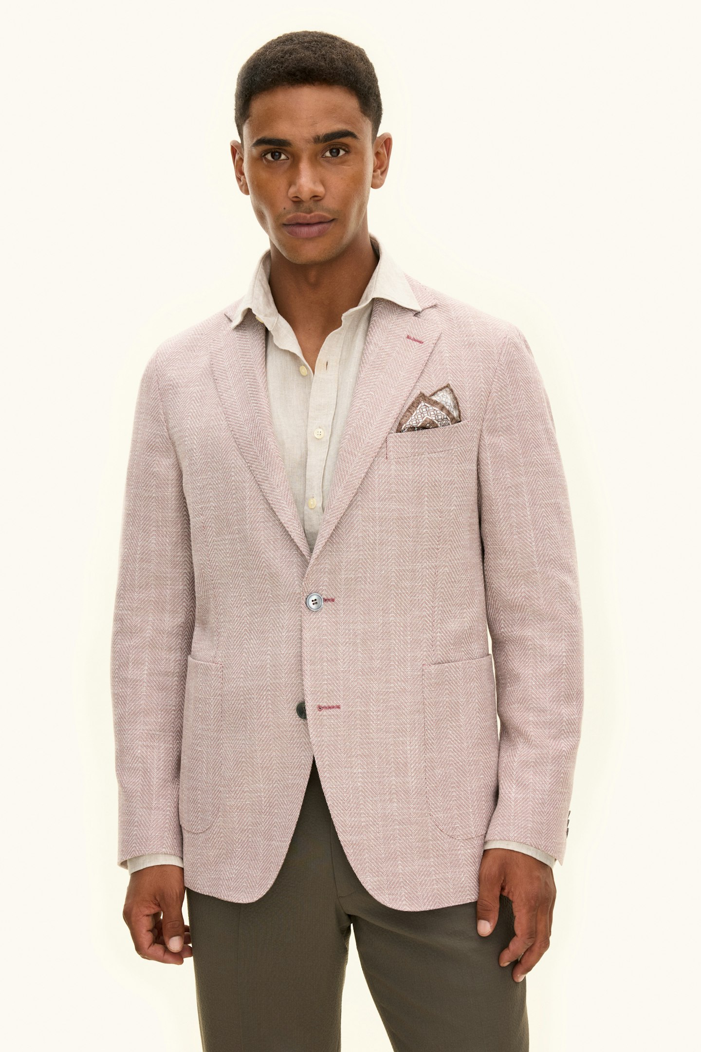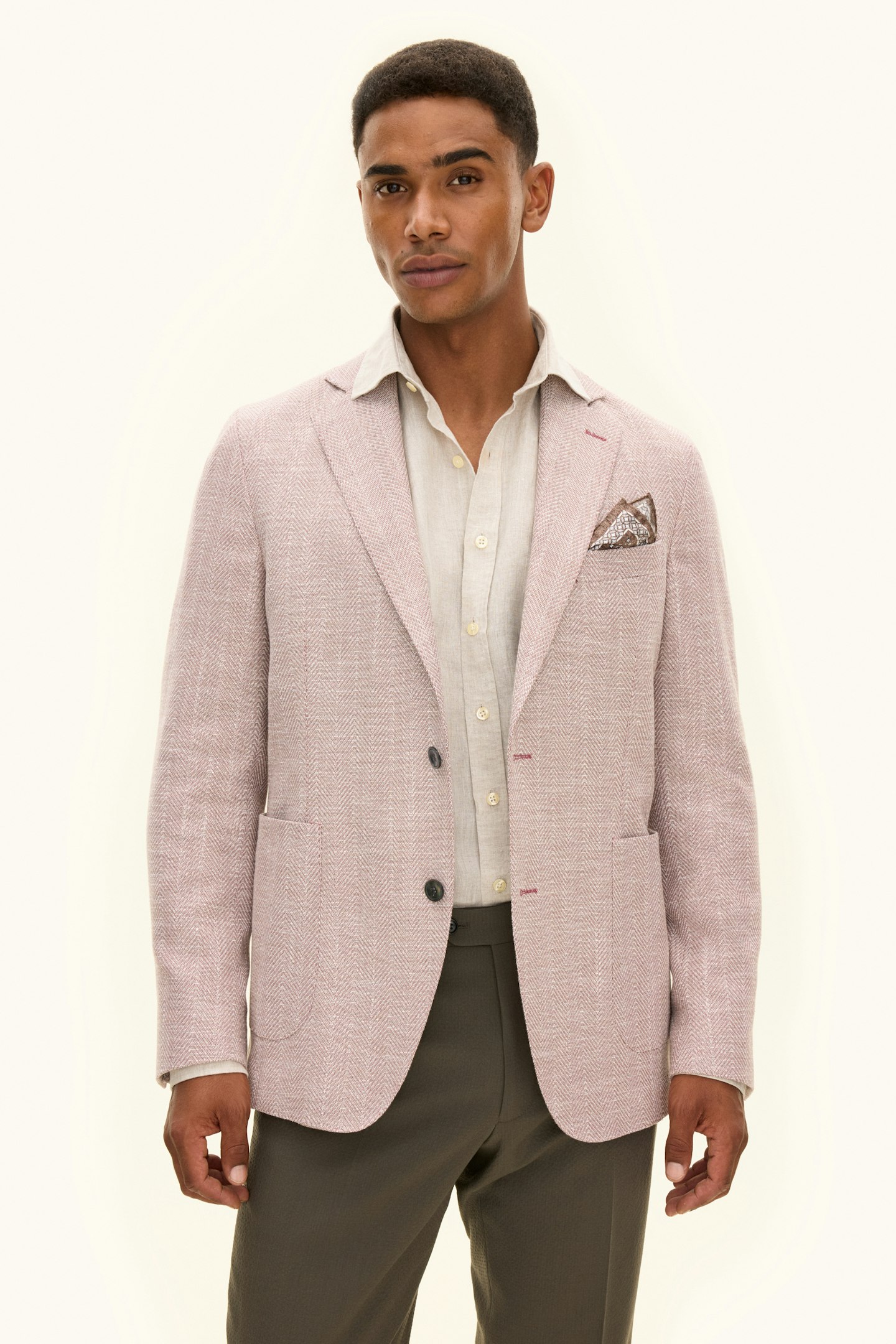 Laget av en myk bomullsblanding, har denne blazeren en regular fit. Den er designet med et tidløst fiskebensmønster og laget med vevd konstruksjon. En moderne klassiker som balanserer stil og komfort.
