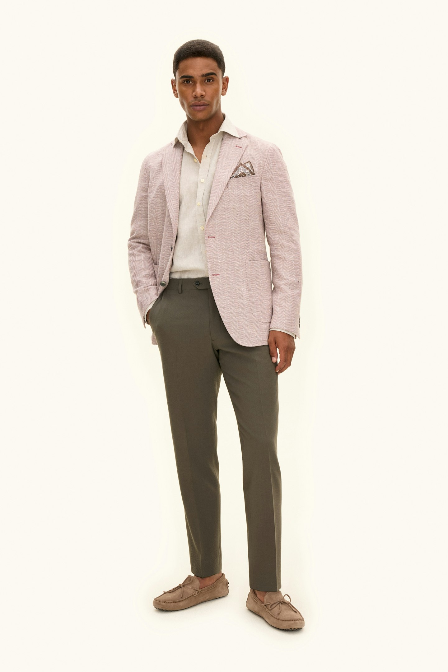 Laget av en myk bomullsblanding, har denne blazeren en regular fit. Den er designet med et tidløst fiskebensmønster og laget med vevd konstruksjon. En moderne klassiker som balanserer stil og komfort.