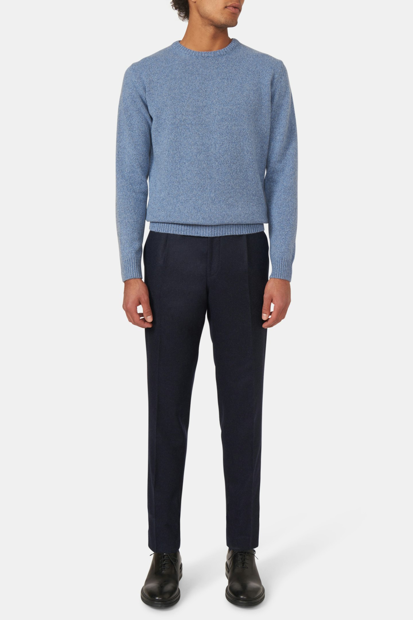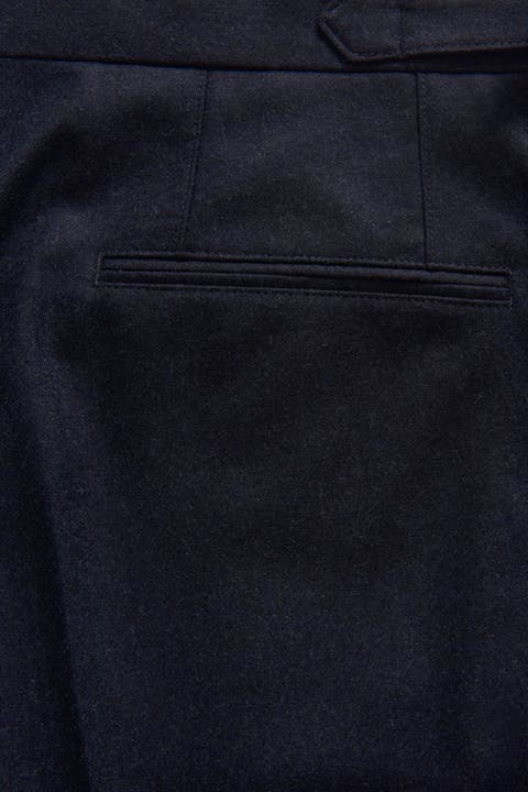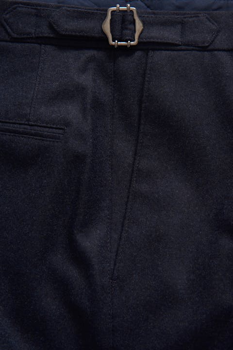Bukse med en høyt liv, enkle legg, stilige sidespenner og avsmalet ankel. Stoff av mykt flanell som gjør den til den perfekte dressbuksen for høsten og vinteren.