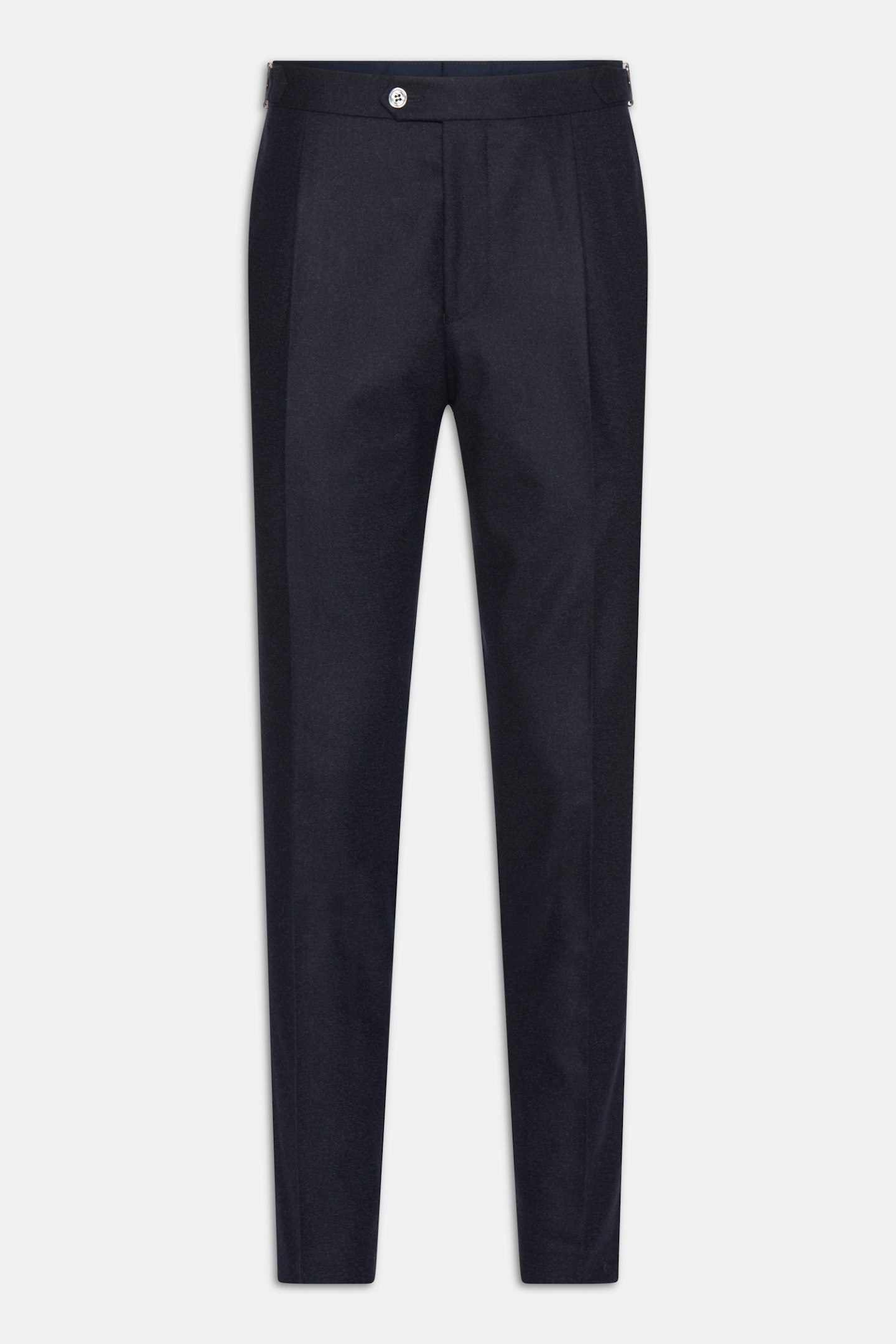 Bukse med en høyt liv, enkle legg, stilige sidespenner og avsmalet ankel. Stoff av mykt flanell som gjør den til den perfekte dressbuksen for høsten og vinteren.