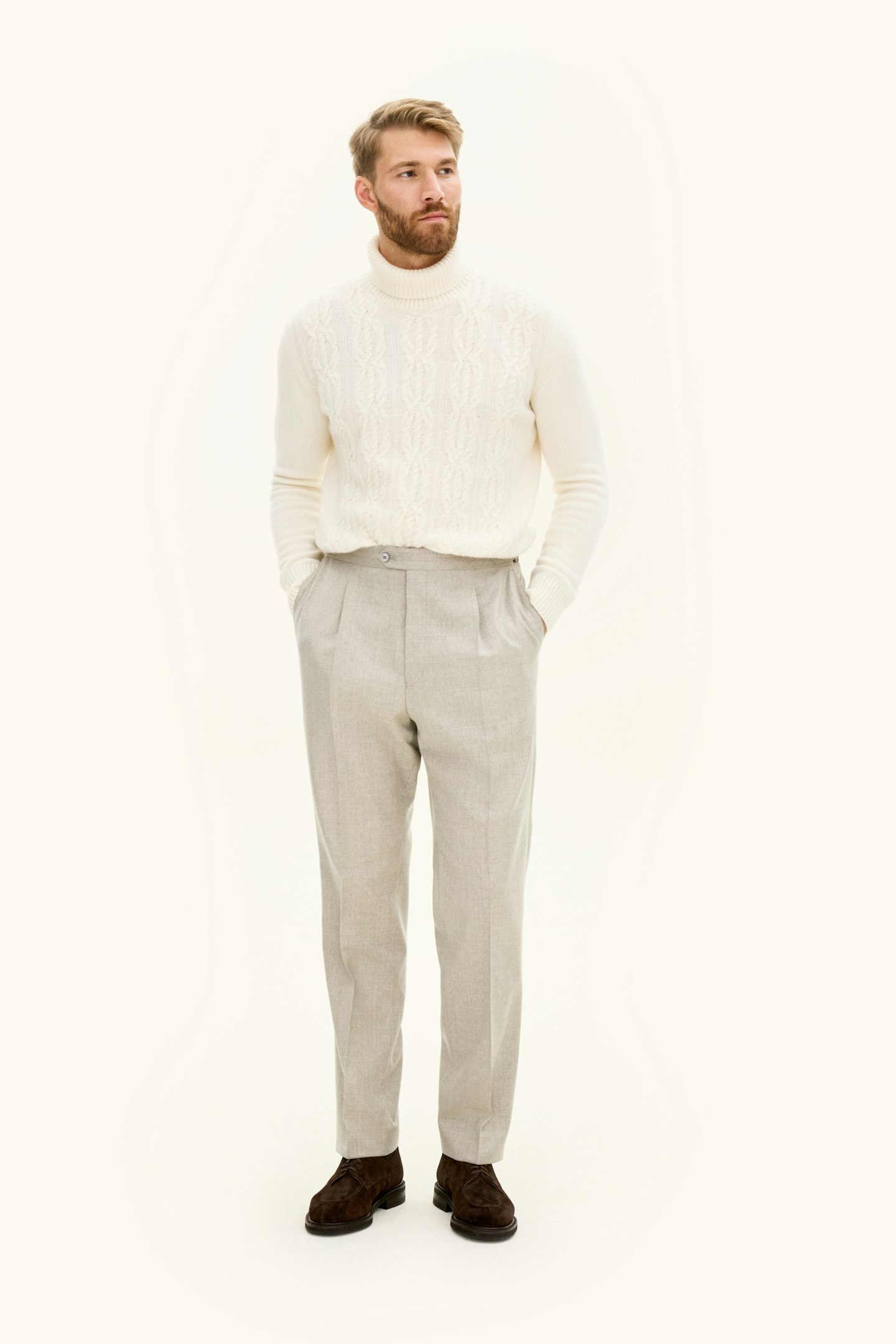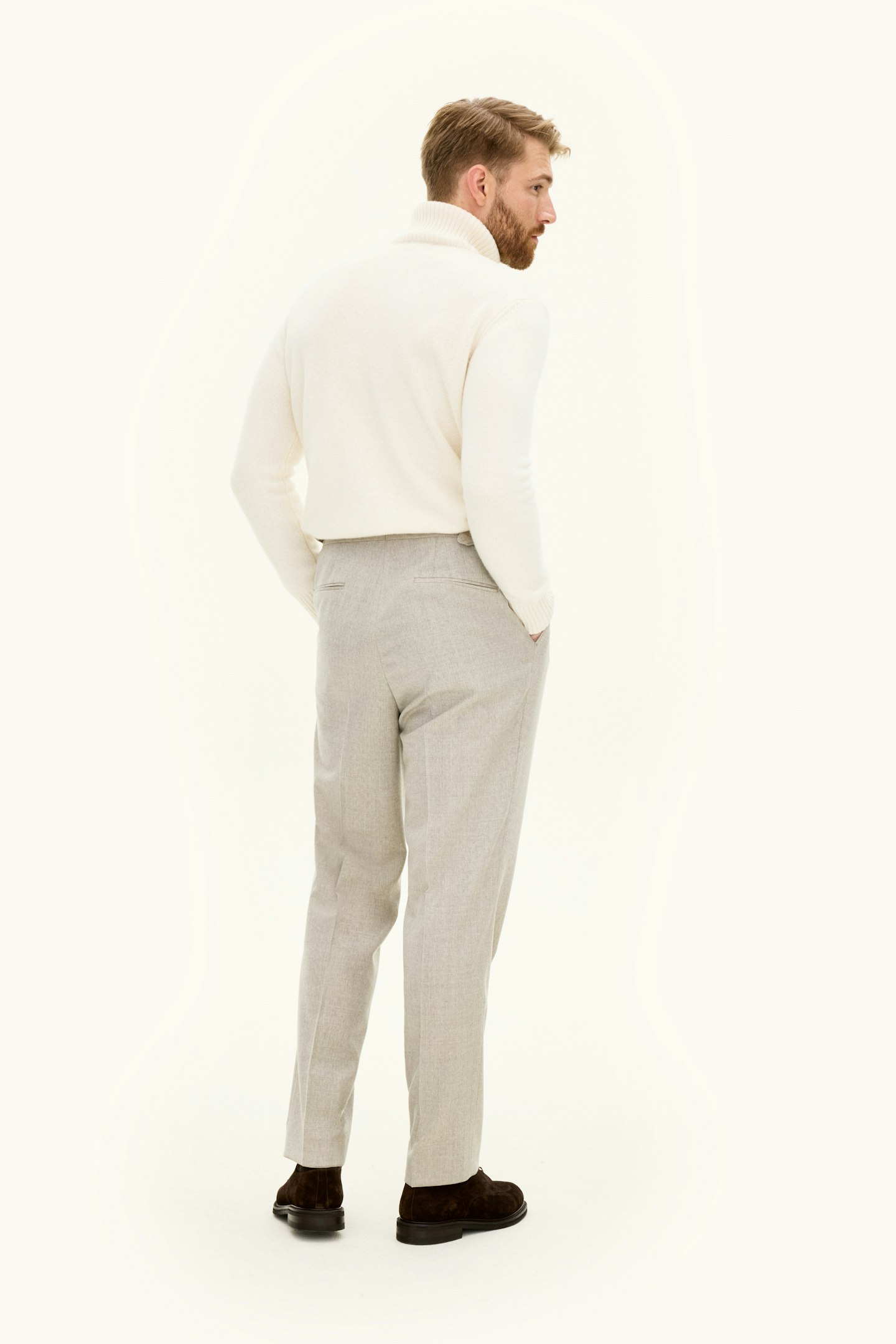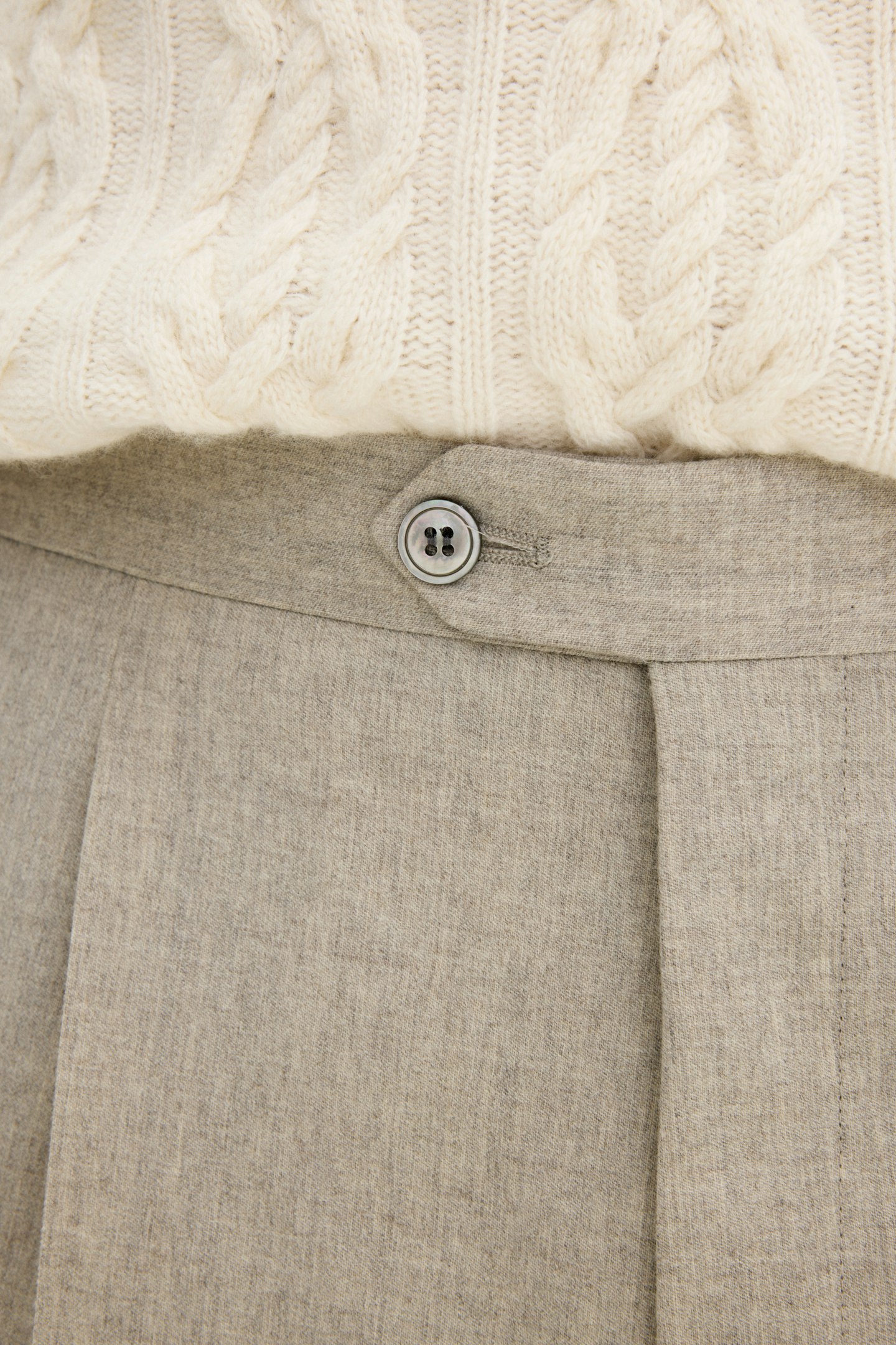 Bukse laget av en eksklusiv ullblanding, med en vellaget regular fit passform og høy midje. Et nøye utformet plagg som balanserer klassisk skreddersøm med en moderne silhuett. Perfekt for både profesjonelle sammenhenger og uformelle anledninger der stil er prioritert.