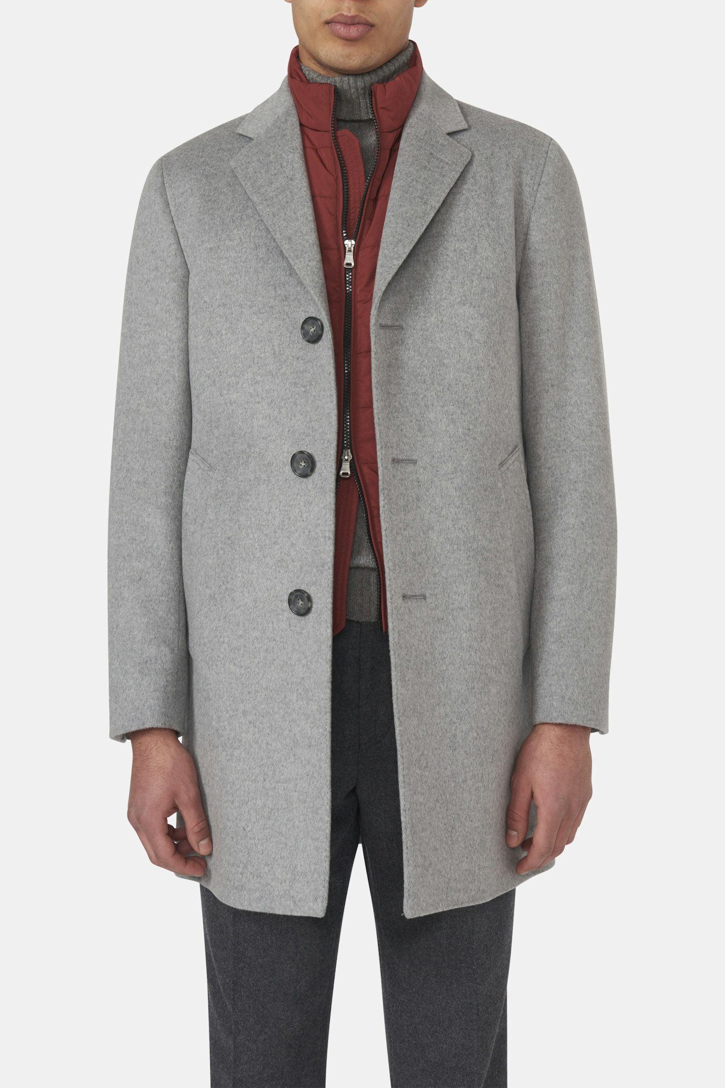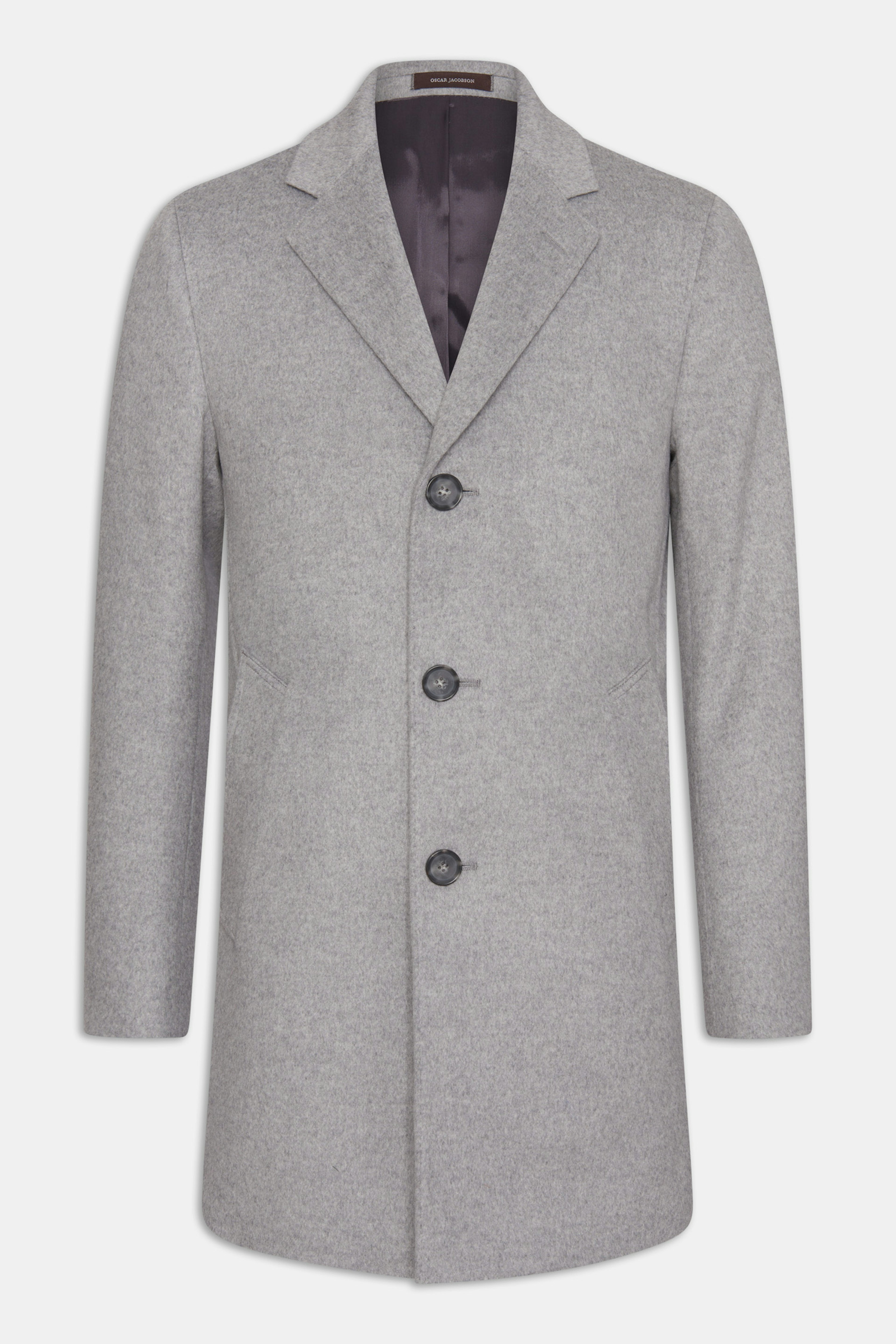 En enkeltspent frakk med skrå sidelommer laget i en ull-, kasjmirblanding med en myk "bever finish". Denne modellen har en tidløs rett passform og en helfôret innside i viskose. En oppdatert klassiker som vil passe inn i mange sesonger fremover!