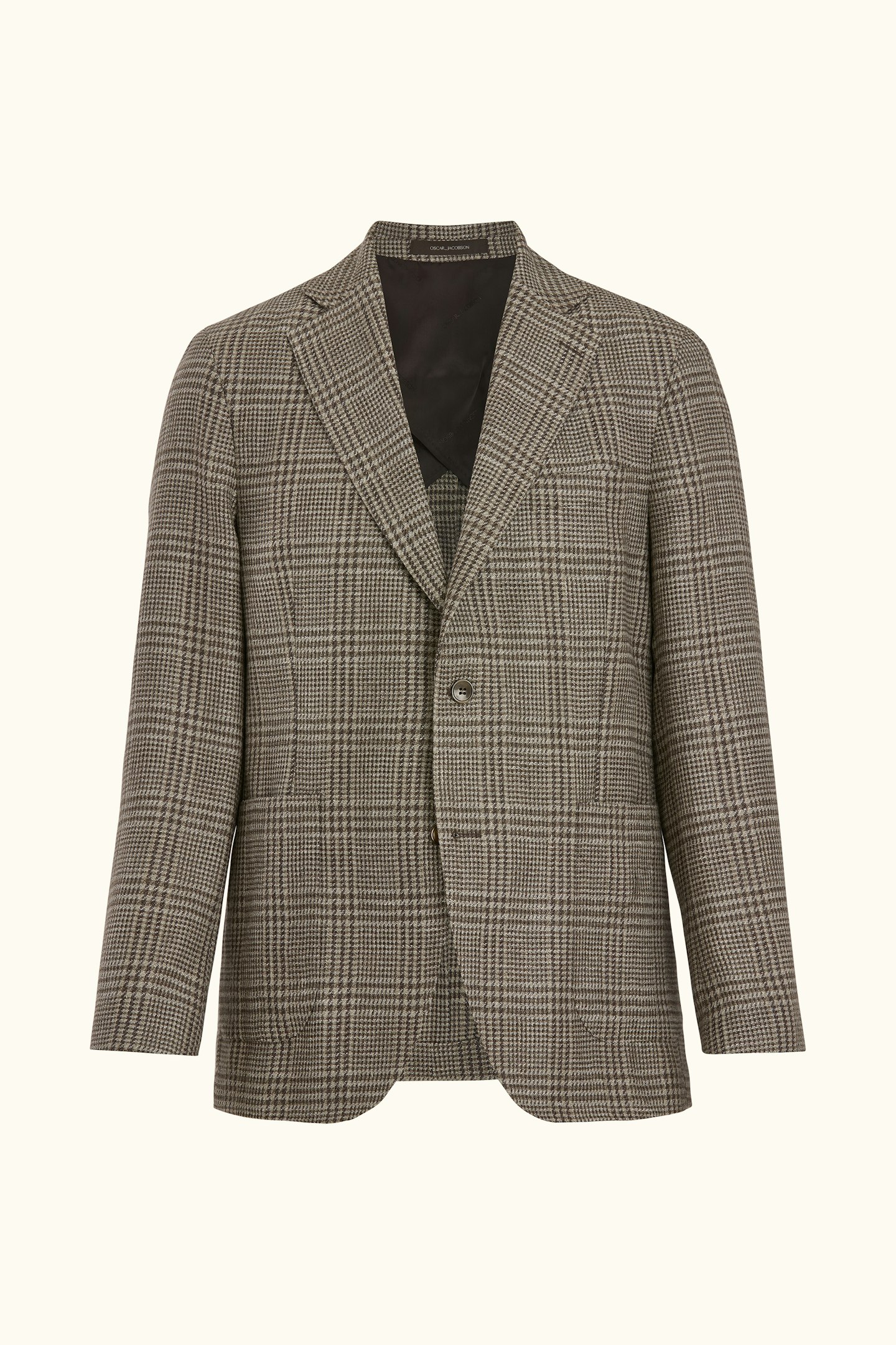 Blazer i regular fit og sofistikert glencheck-mønster, laget av en linblanding som gir både struktur og letthet. Enkeltspent og ustrukturert – et moderne plagg med klassisk karakter.