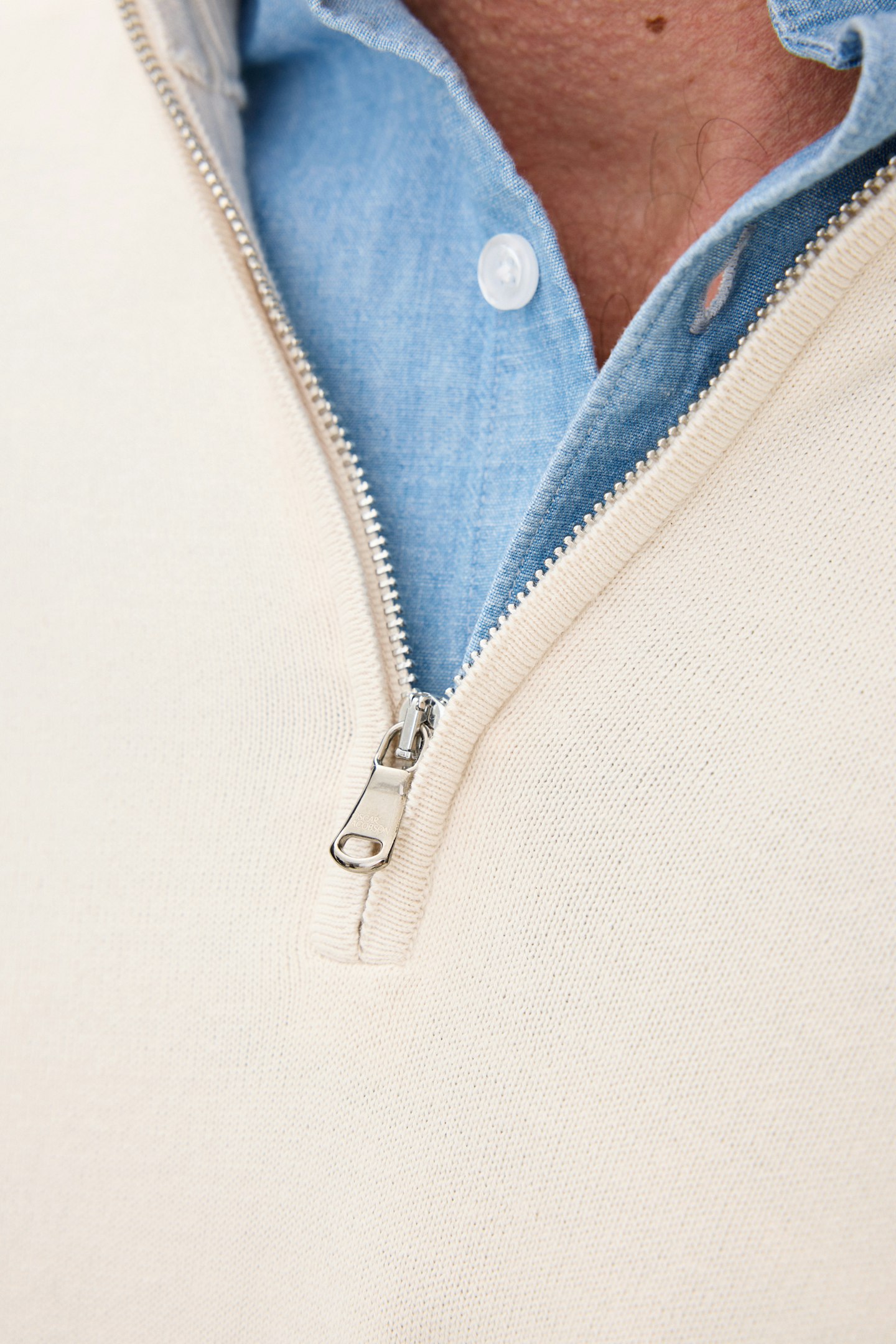 Laget av 100 % bomull, dette strikkede plagget har en slim fit. Det er designet med en sofistikert half zip-krage, stilrent med et tidløst ensfarget mønster og laget med strikket konstruksjon. Perfekt for lag-på-lag-stil eller som et fremtredende plagg.