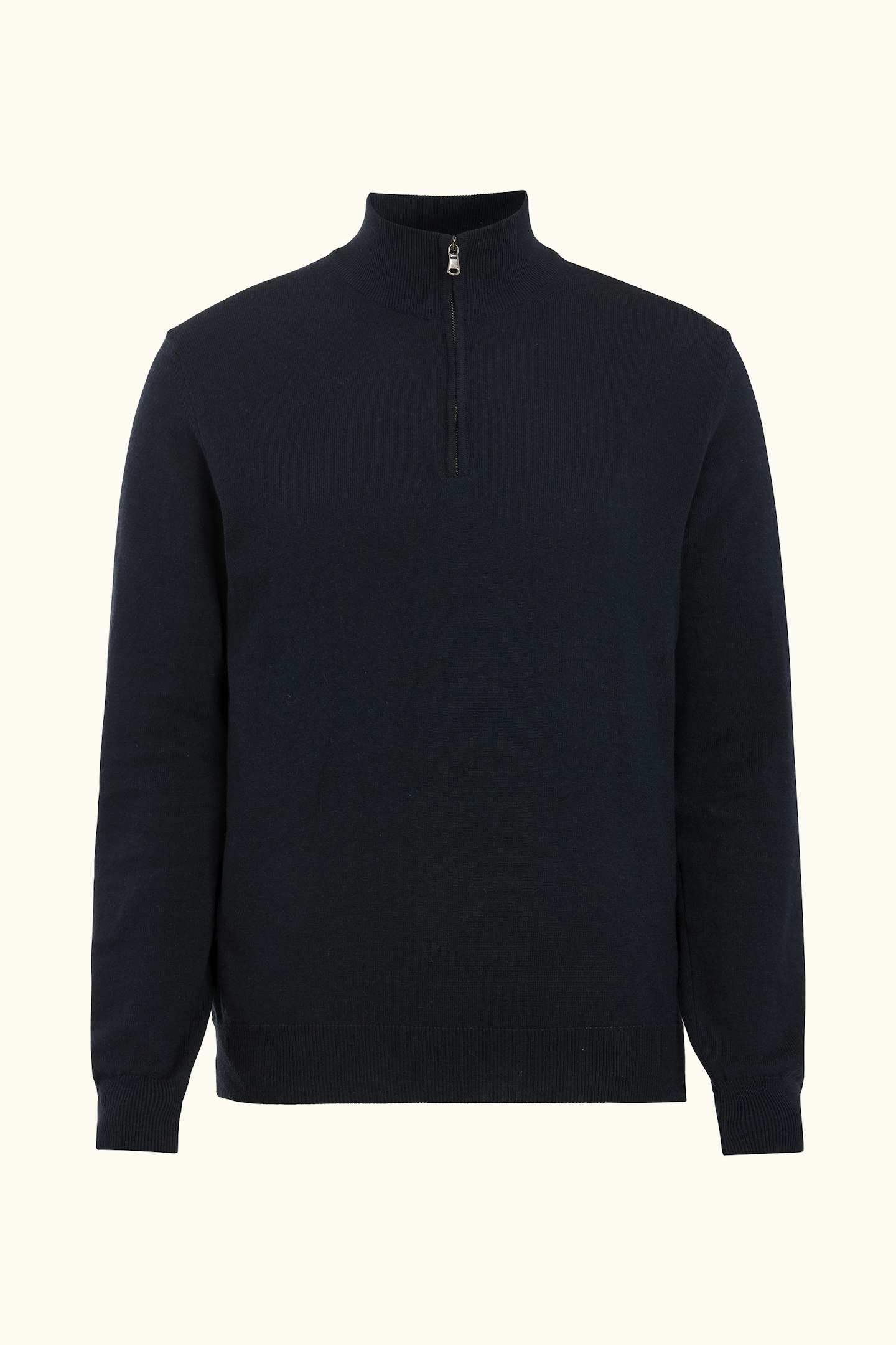 En genser med half-zip i en myk bomullsblanding med regular fit. Den strikkede teksturen gir et avslappet, men sofistikert uttrykk, mens detaljen med half-zip gjør at plagget lett kan variere mellom casual og elegant.