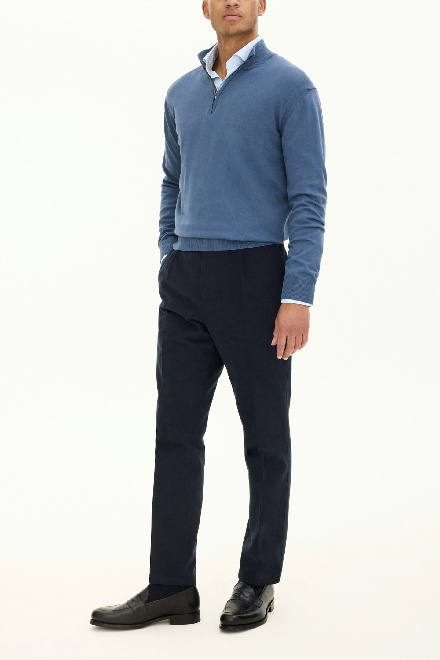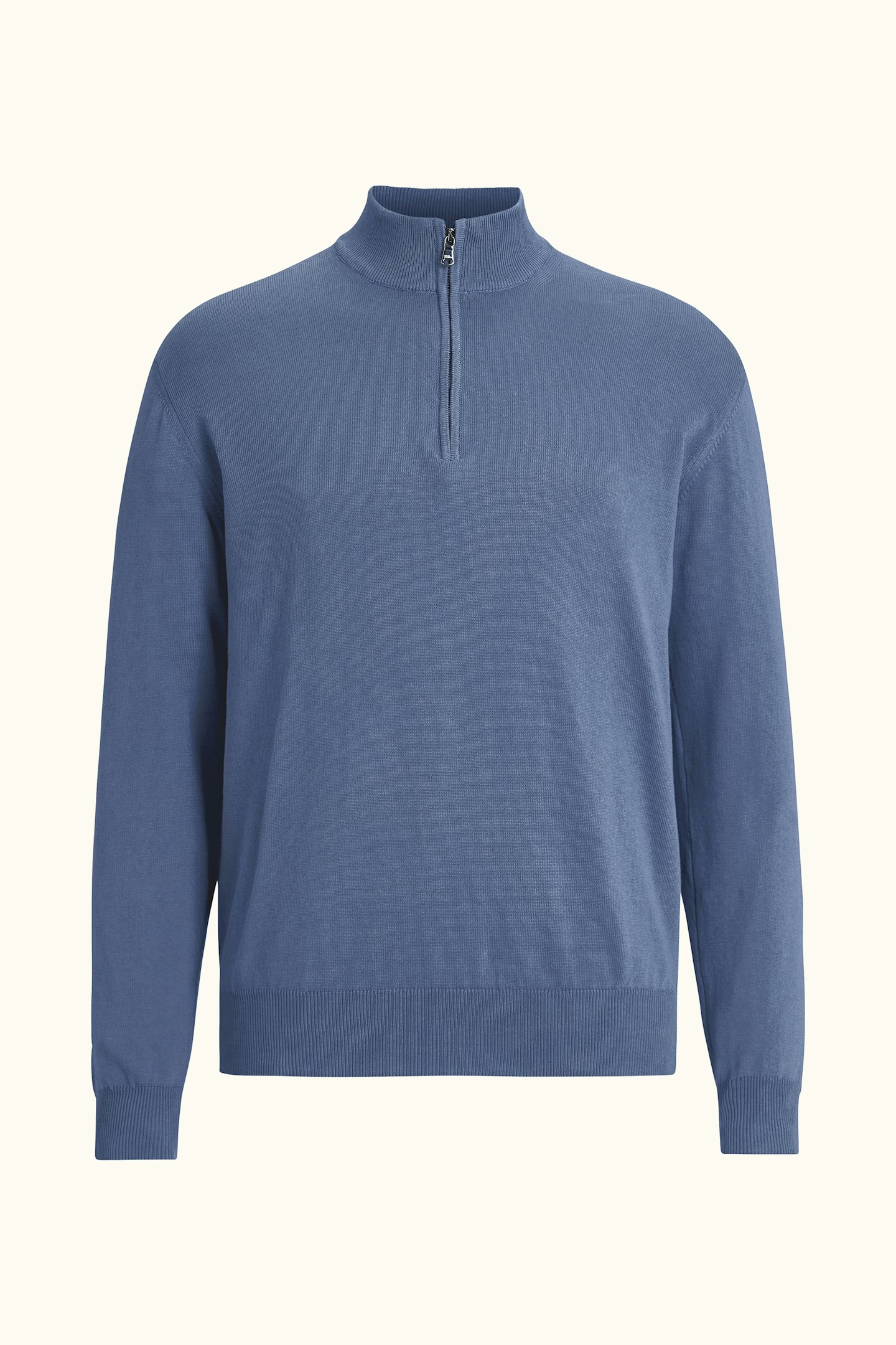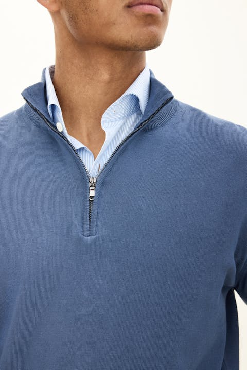 Langermet genser i half zip-modell. Laget av 100% bomull.