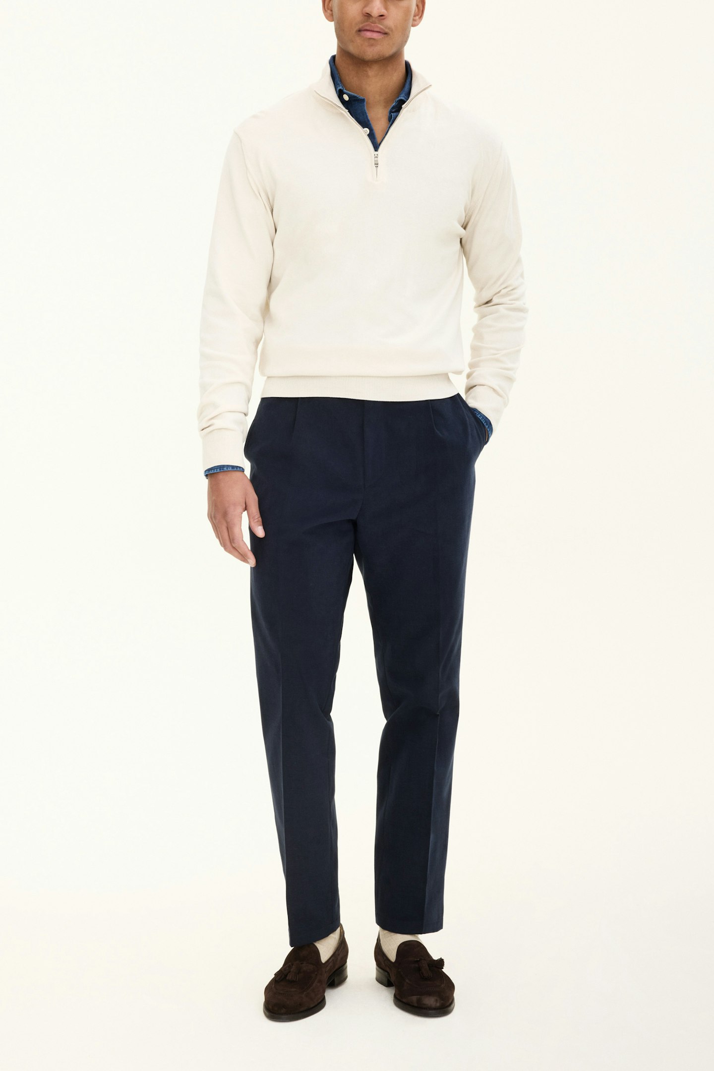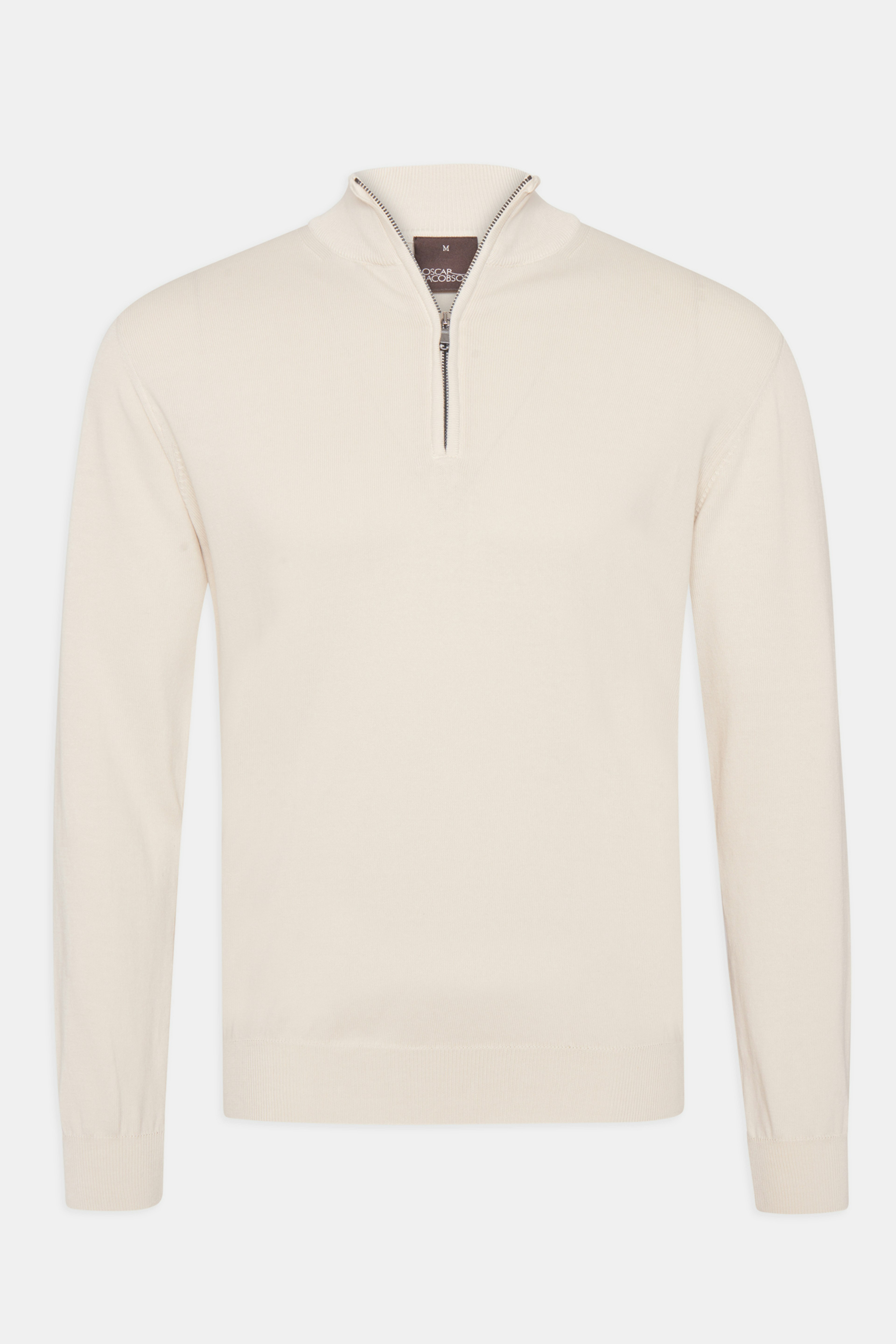 Langermet genser i half zip-modell. Laget av 100% bomull.