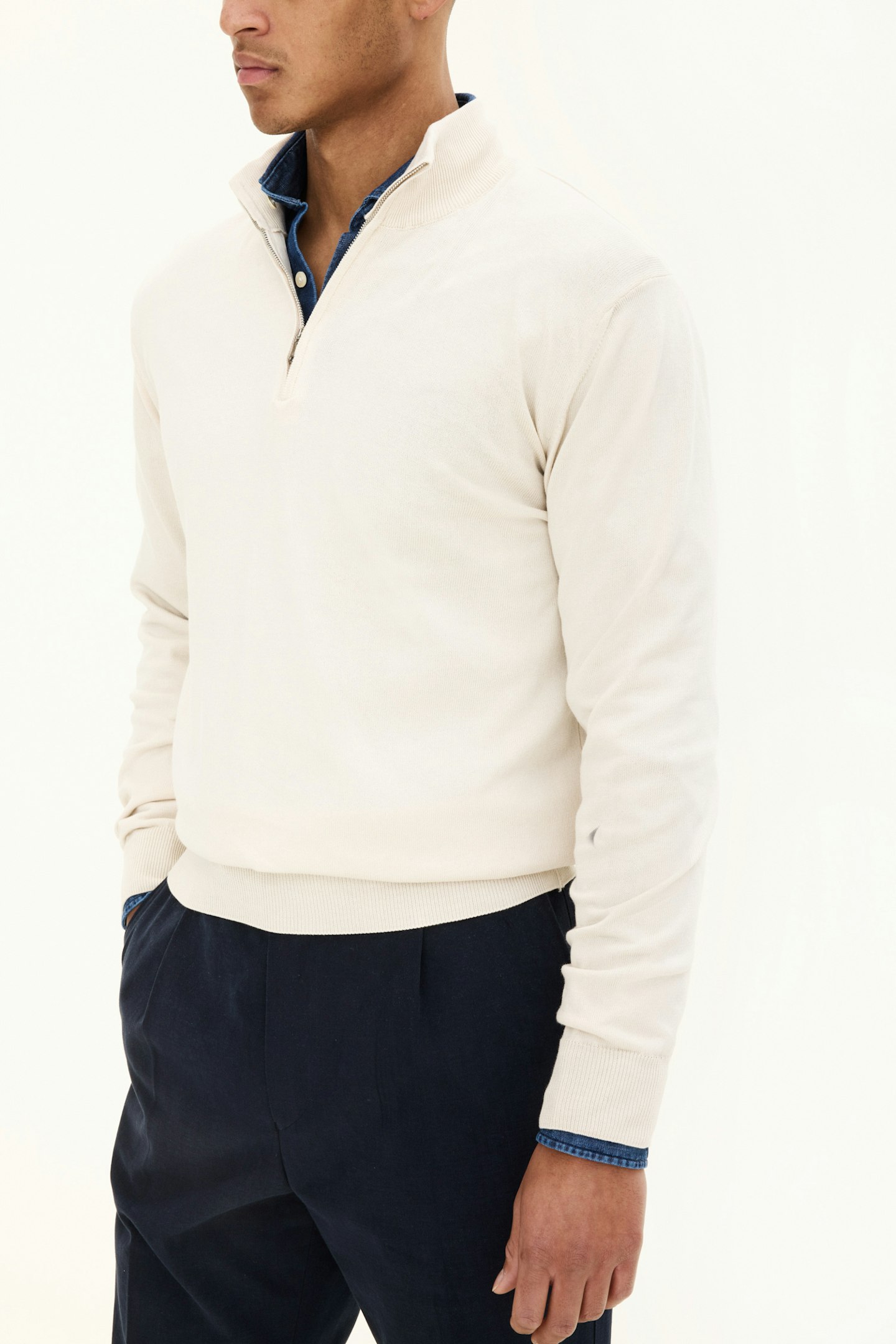 Langermet genser i half zip-modell. Laget av 100% bomull.