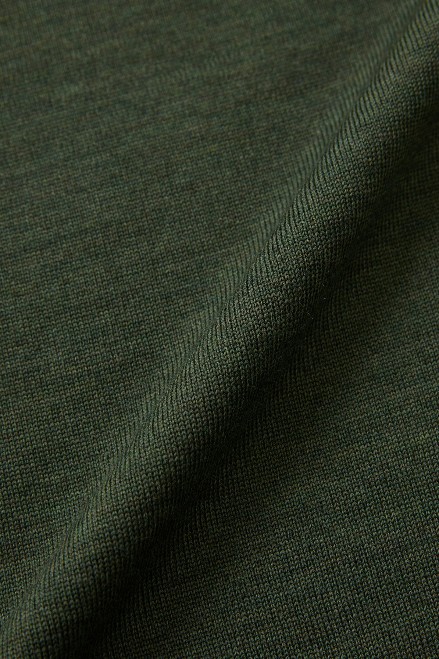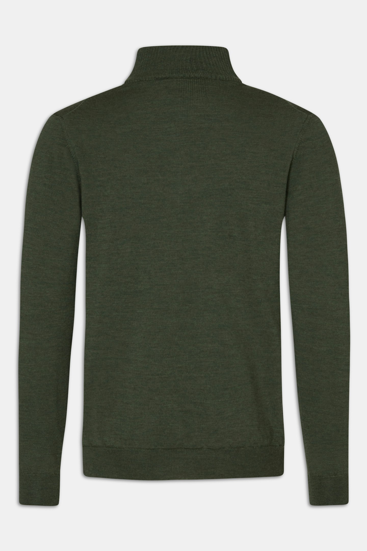 Petter Half Zip er en slim fit genser med halv glidelås-design. Laget av 100% ren ull, er den strikket og har et ensfarget mønster.