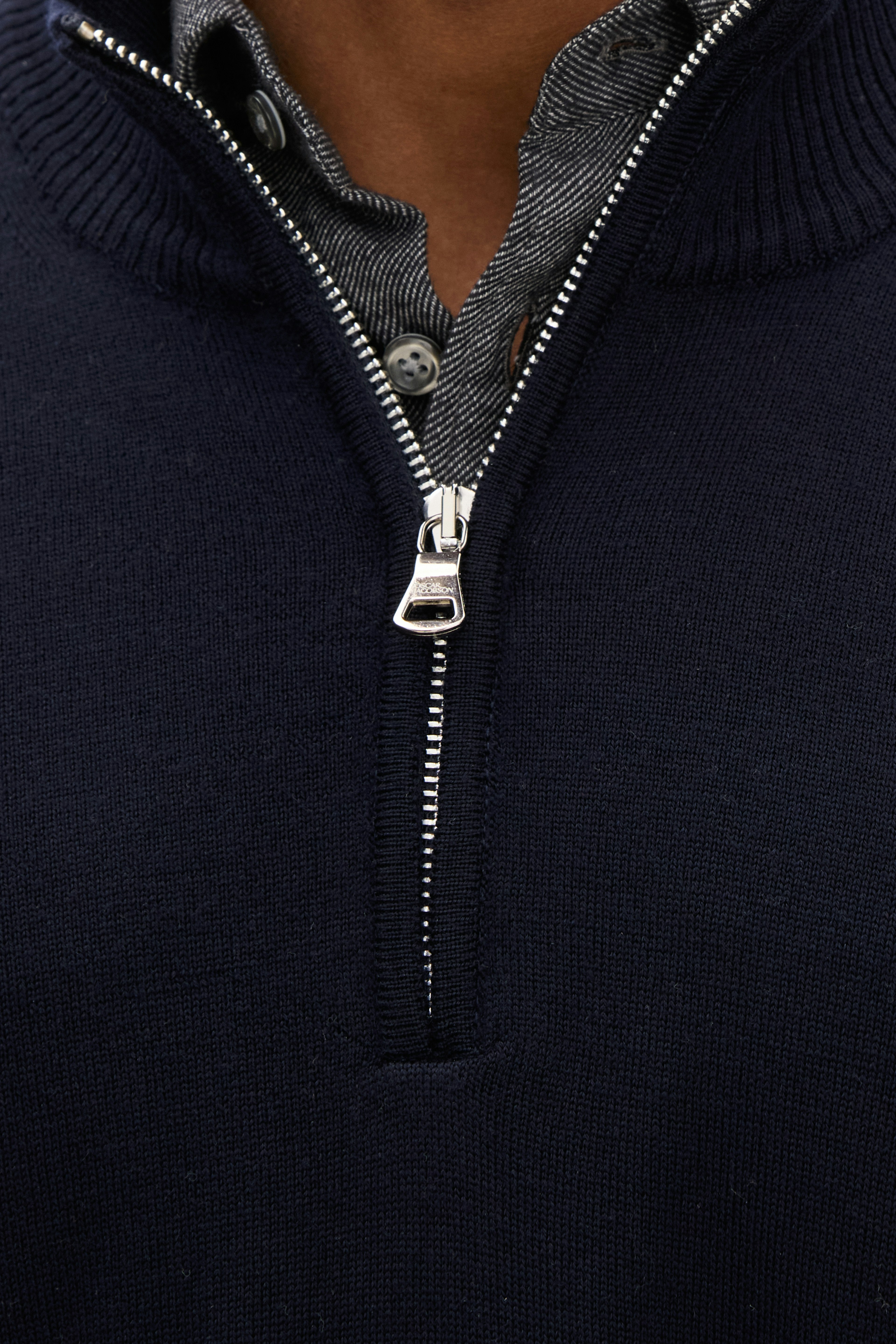 Petter Half Zip er en slim fit genser med halv glidelås-design. Laget av 100% ren ull, er den strikket og har et ensfarget mønster.