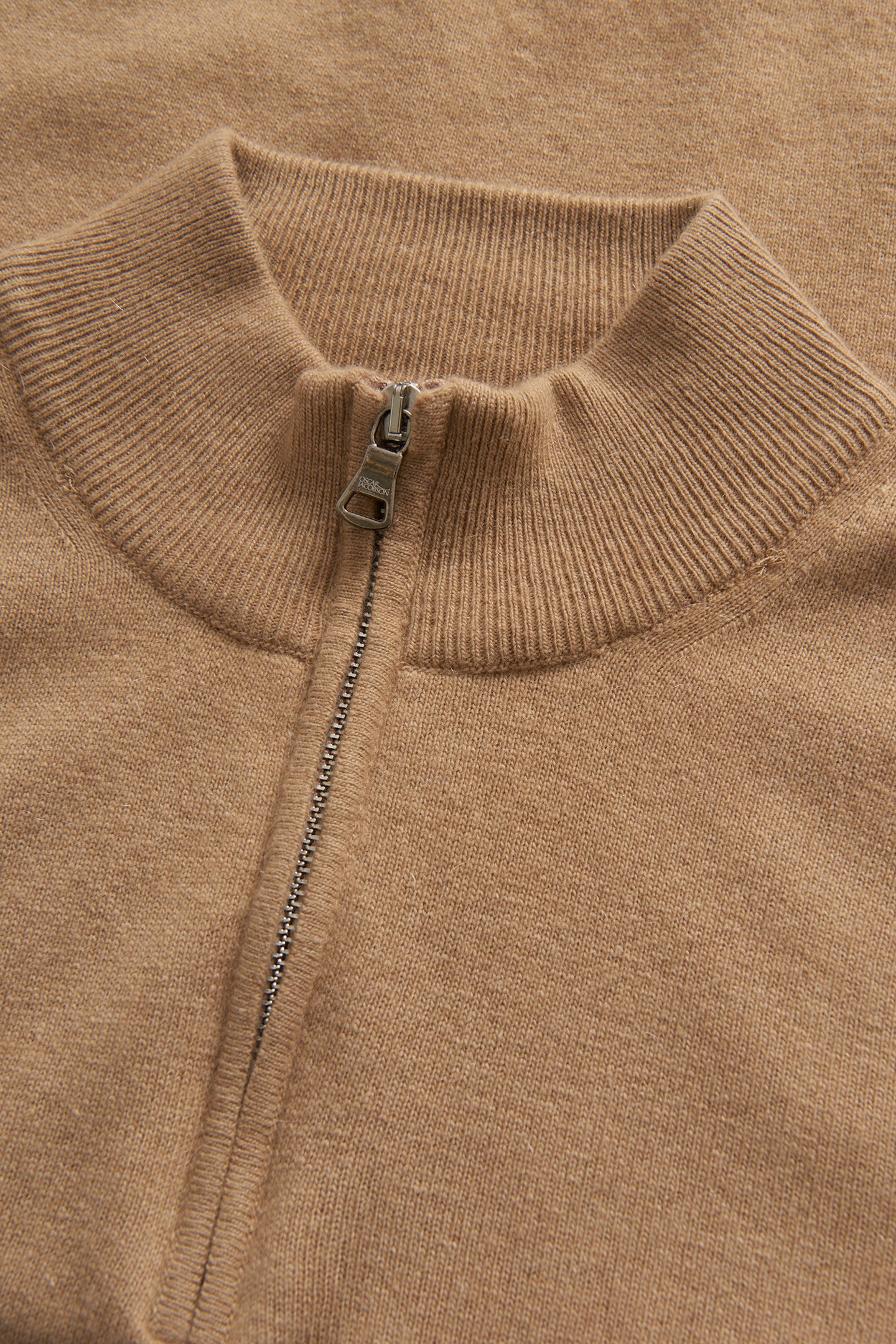Langermet genser i half zip-modell laget av myk ull og kasjmir.