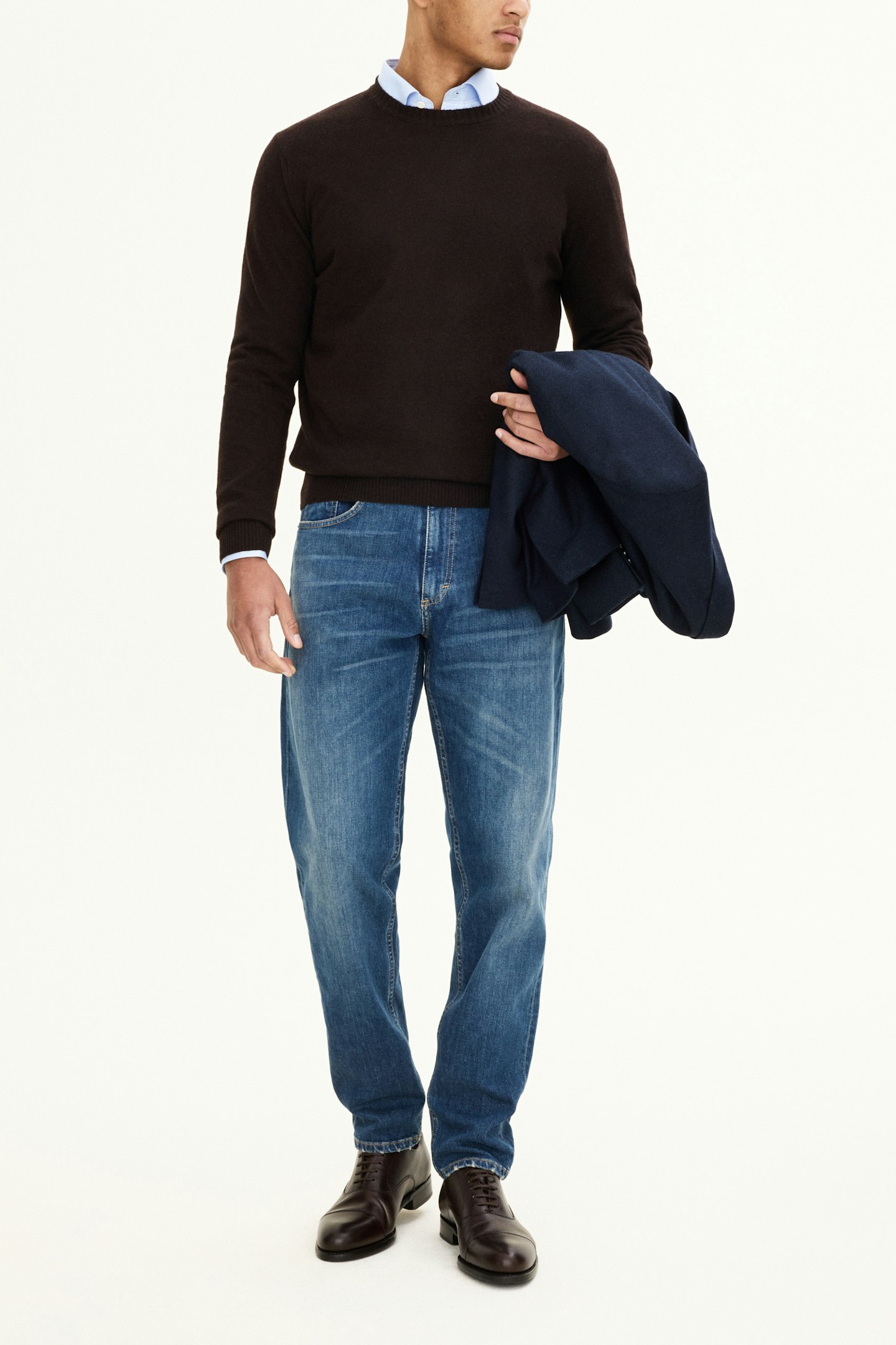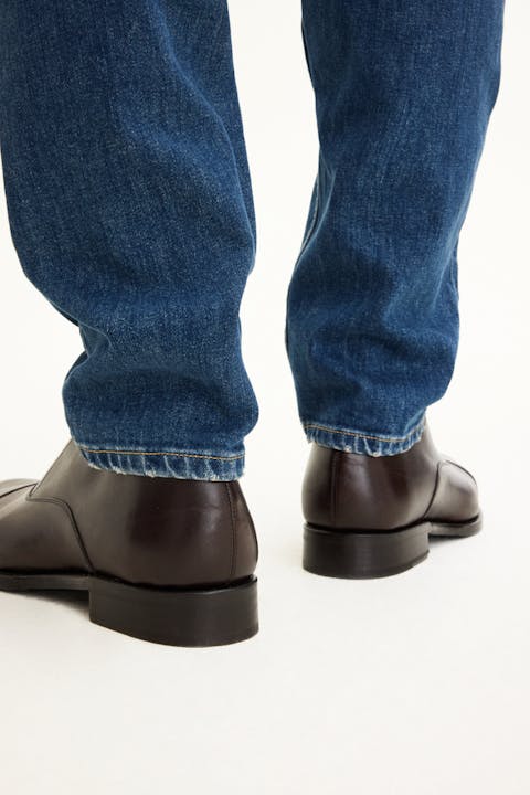 Passformen er løs ved lårene og knærne med smal fot, livet er høy til normal. Laget av denim med strech fra Candiani i Italia, som er vevd på gamle vevstoler fra Levis med knapper og nagler fra Italia og Borås. Jeansen er laget av 100% bærekraftig bomull.