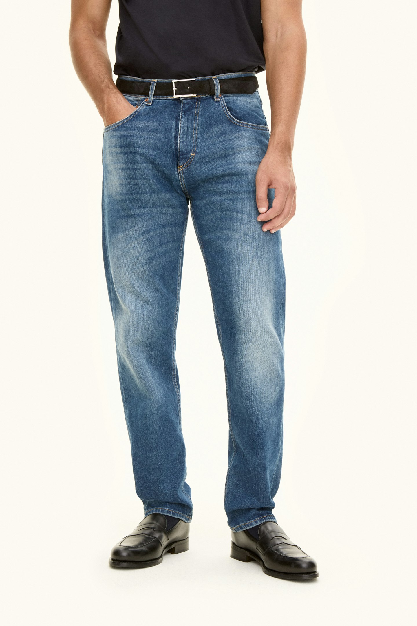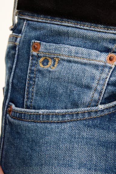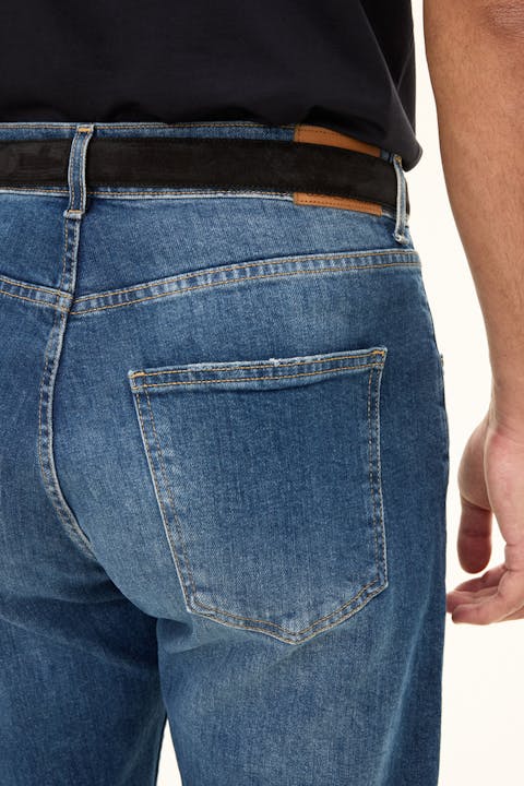 Passformen er løs, med rette ben med normalt til høyt liv. Laget av denim med strech fra Candiani i Italia, som er vevd på gamle vevstoler fra Levis med knapper og nagler fra Italia og Borås. Jeansen er laget av 100% bærekraftig bomull.