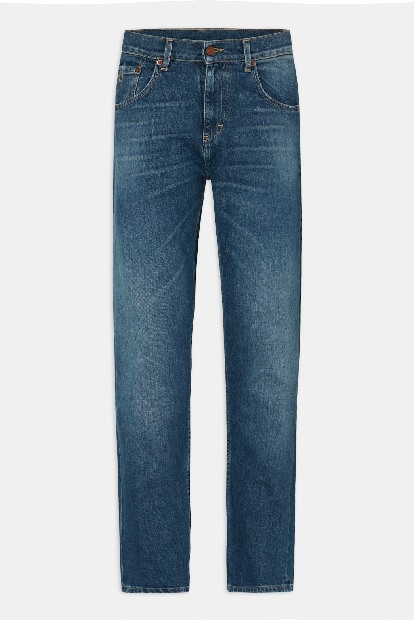 Passformen er løs, med rette ben med normalt til høyt liv. Laget av denim med strech fra Candiani i Italia, som er vevd på gamle vevstoler fra Levis med knapper og nagler fra Italia og Borås. Jeansen er laget av 100% bærekraftig bomull.