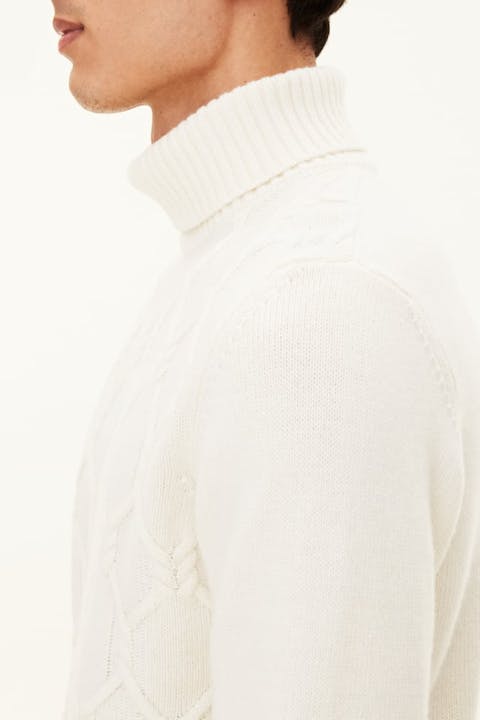 Pologenser med flettet struktur foran. Myk og behagelig kvalitet i en blanding av ull, kasjmir og viskose. Strikket i 7gg med 3-lags, som gjør genseren tykkere og sterkere, ideell for kalde høst- og vinterdager.