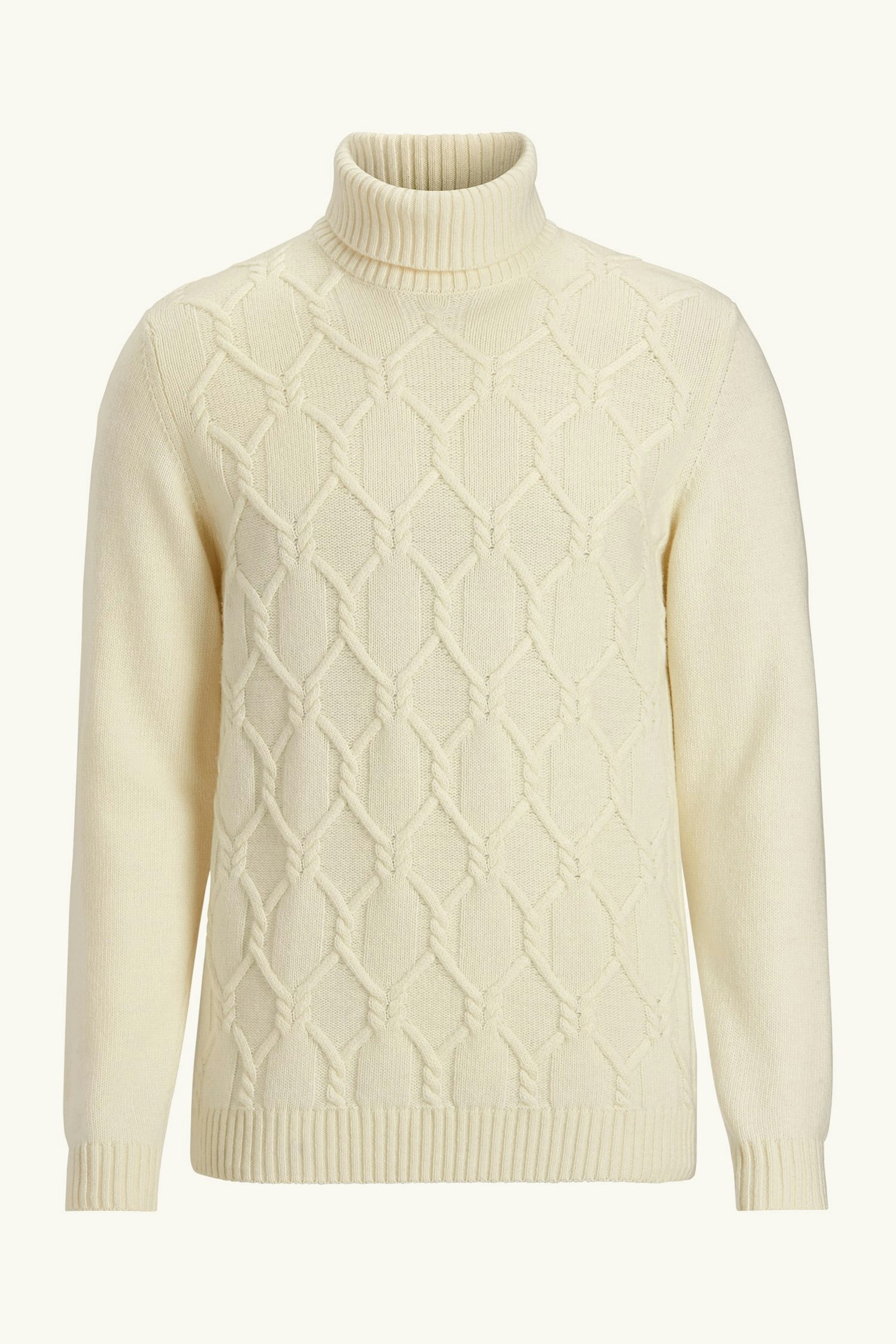 Pologenser med flettet struktur foran. Myk og behagelig kvalitet i en blanding av ull, kasjmir og viskose. Strikket i 7gg med 3-lags, som gjør genseren tykkere og sterkere, ideell for kalde høst- og vinterdager.