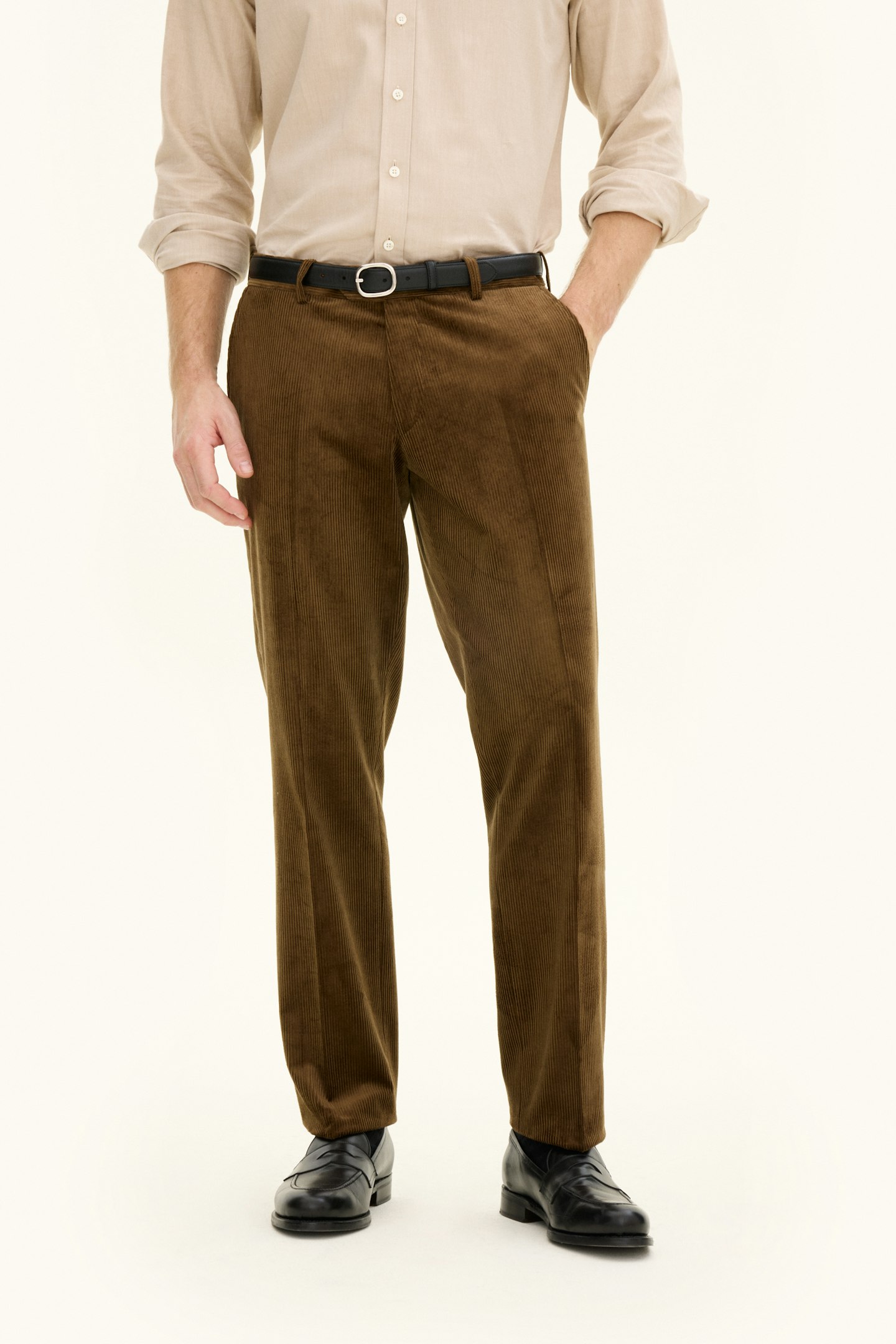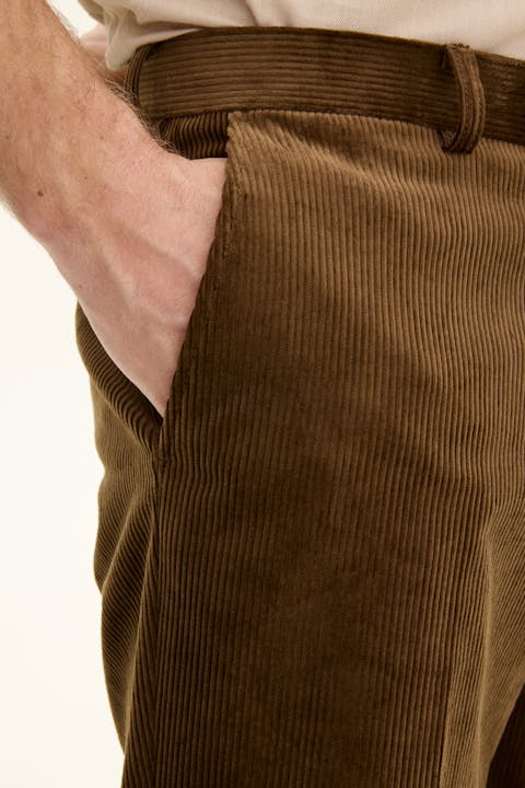 Kordfløyelbuksen er en skikkelig klassiker i den mannlige garderoben! Denne modellen har en avsmalet passform, som uten å føles trang, gir en velkledd silhuett. Det bredsporede kordfløyelstoffet er like fleksibelt som elegant, og passer like bra i en formell som en avslappet stil.