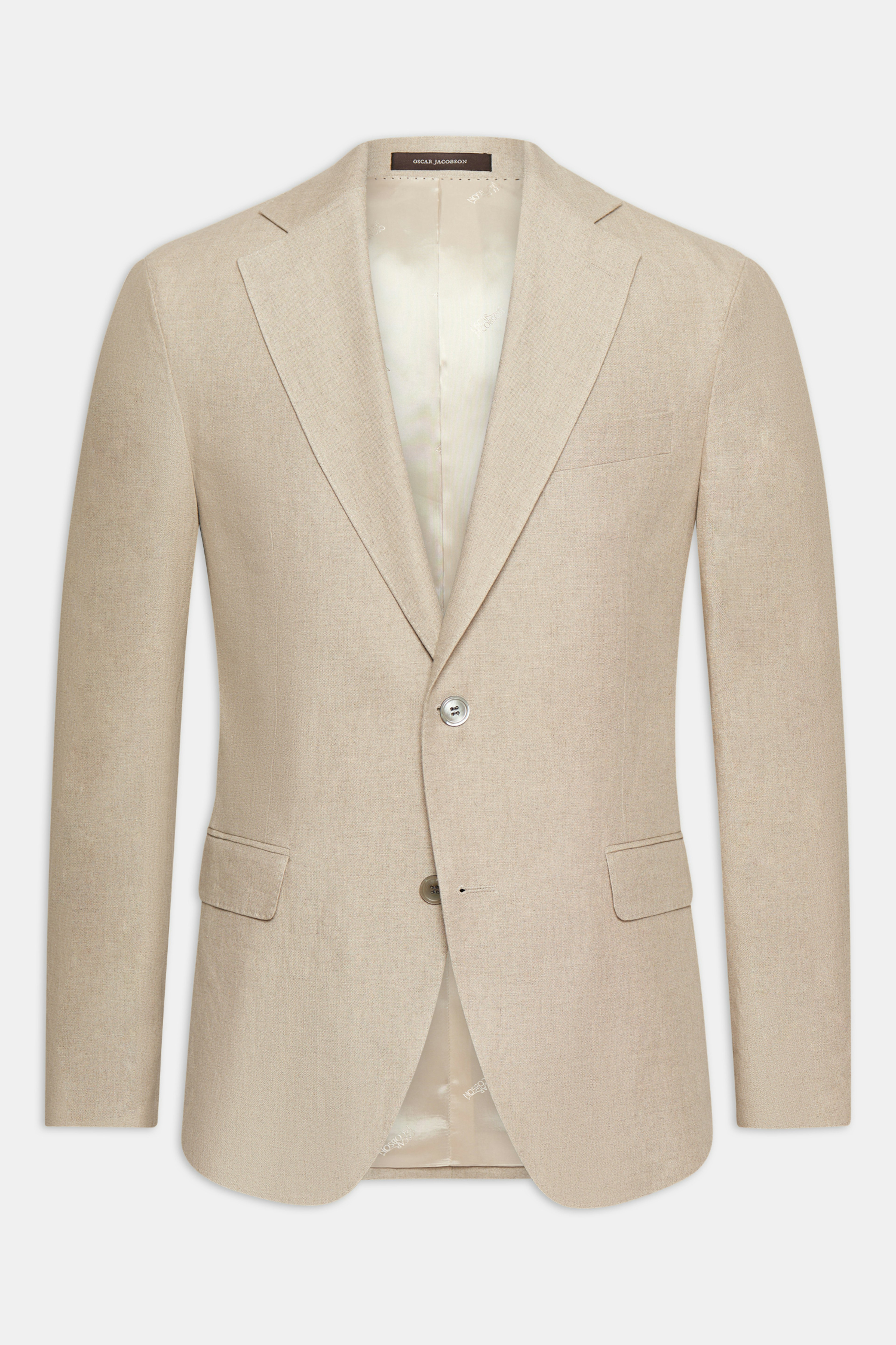Enkeltspent blazer i regular fit med myk skulder, lommeklaff og helfôret innside. Laget av lin.