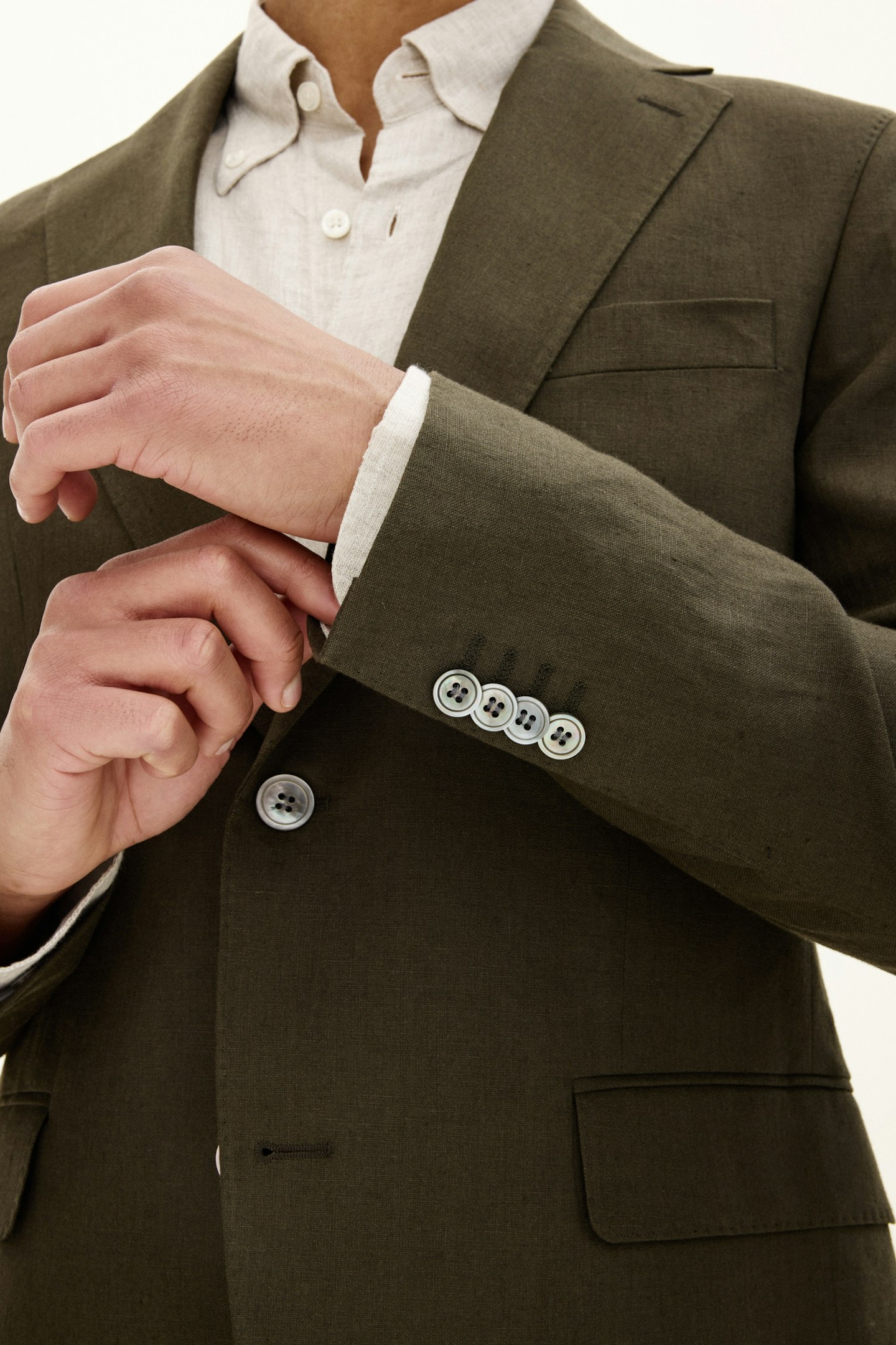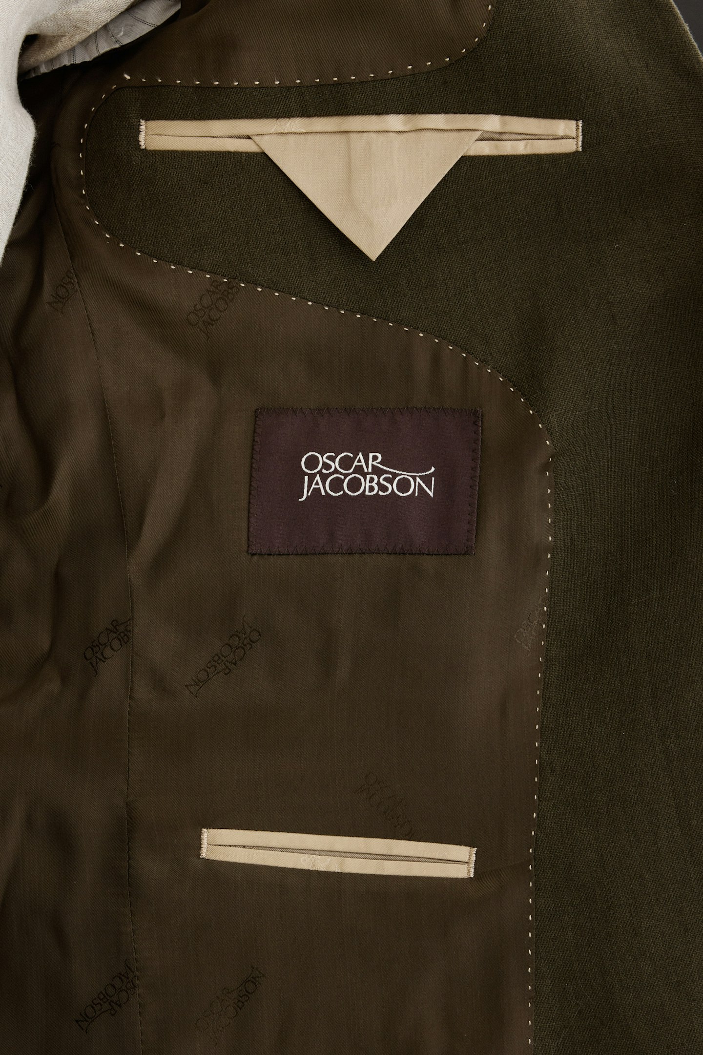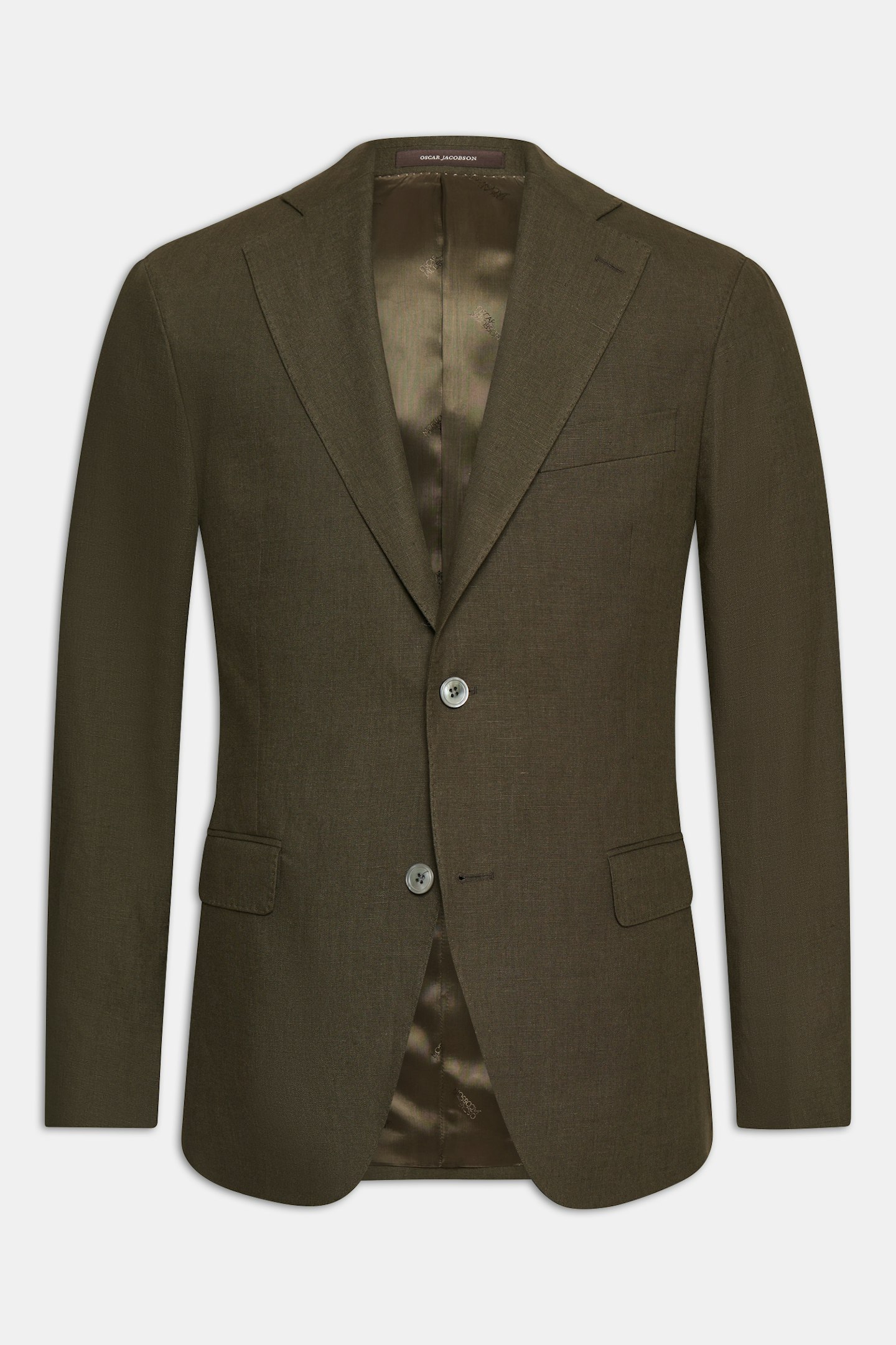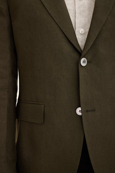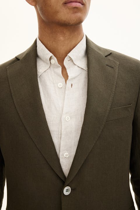 Enkeltspent blazer i regular fit med myk skulder, lommeklaff og helfôret innside. Laget av lin.