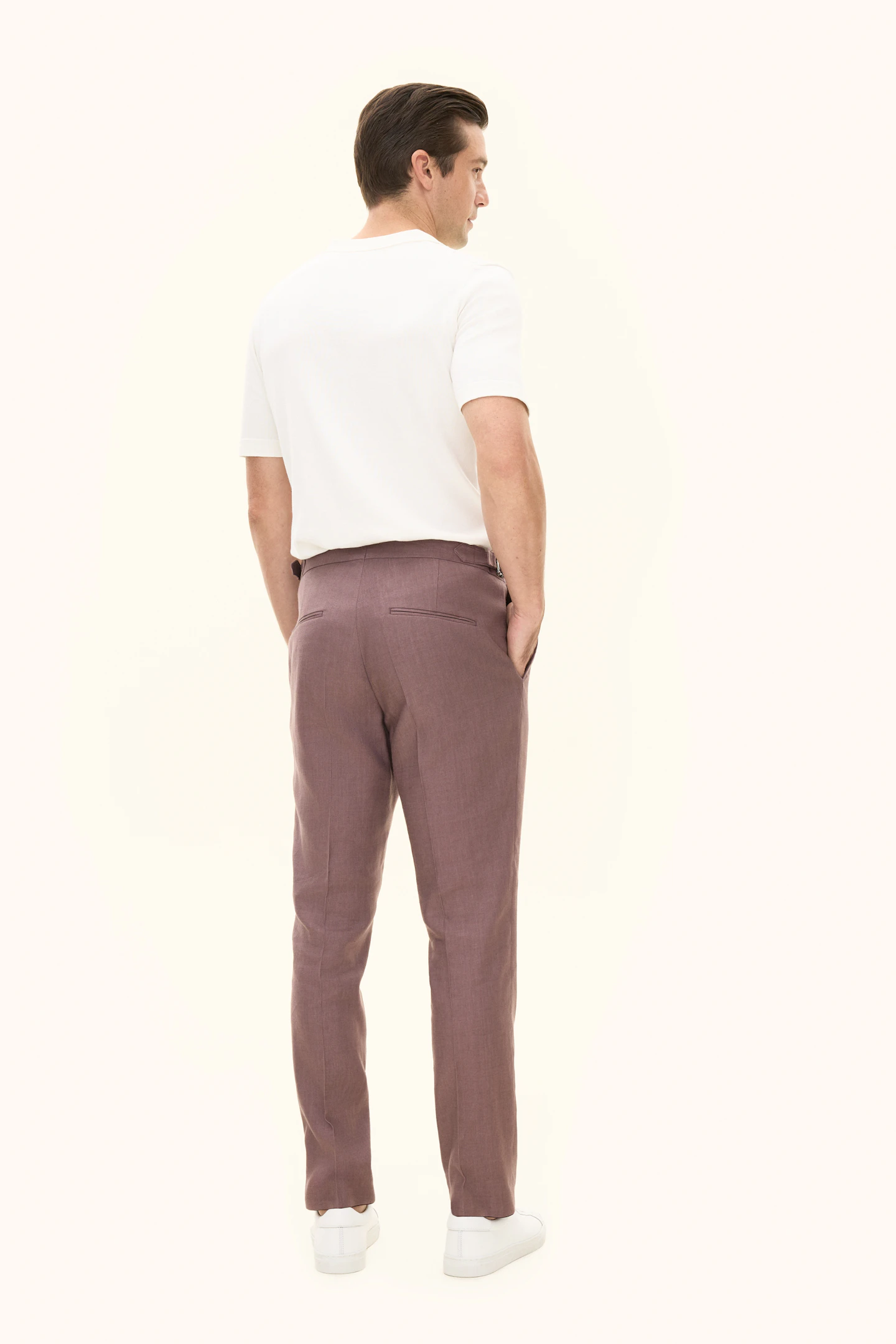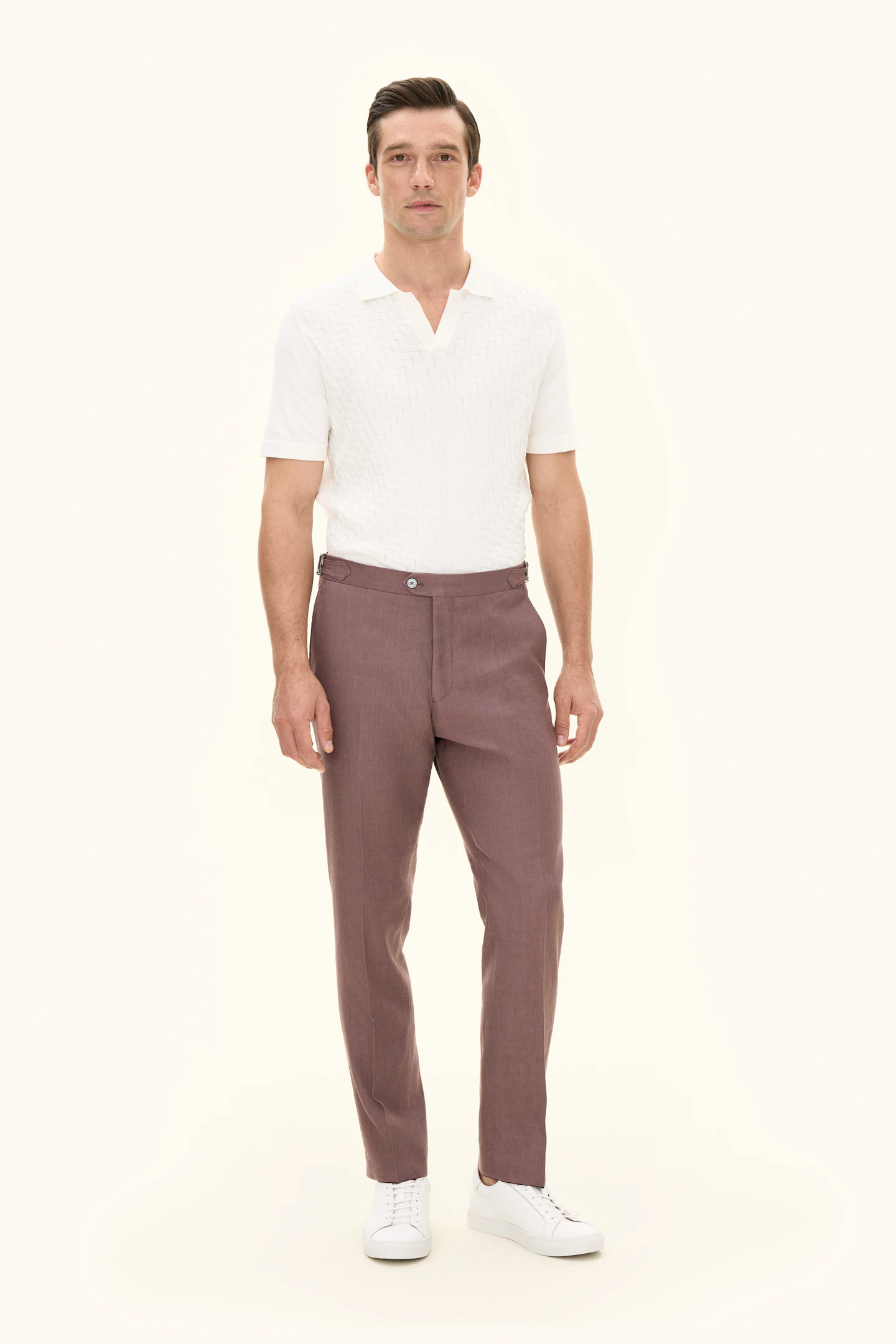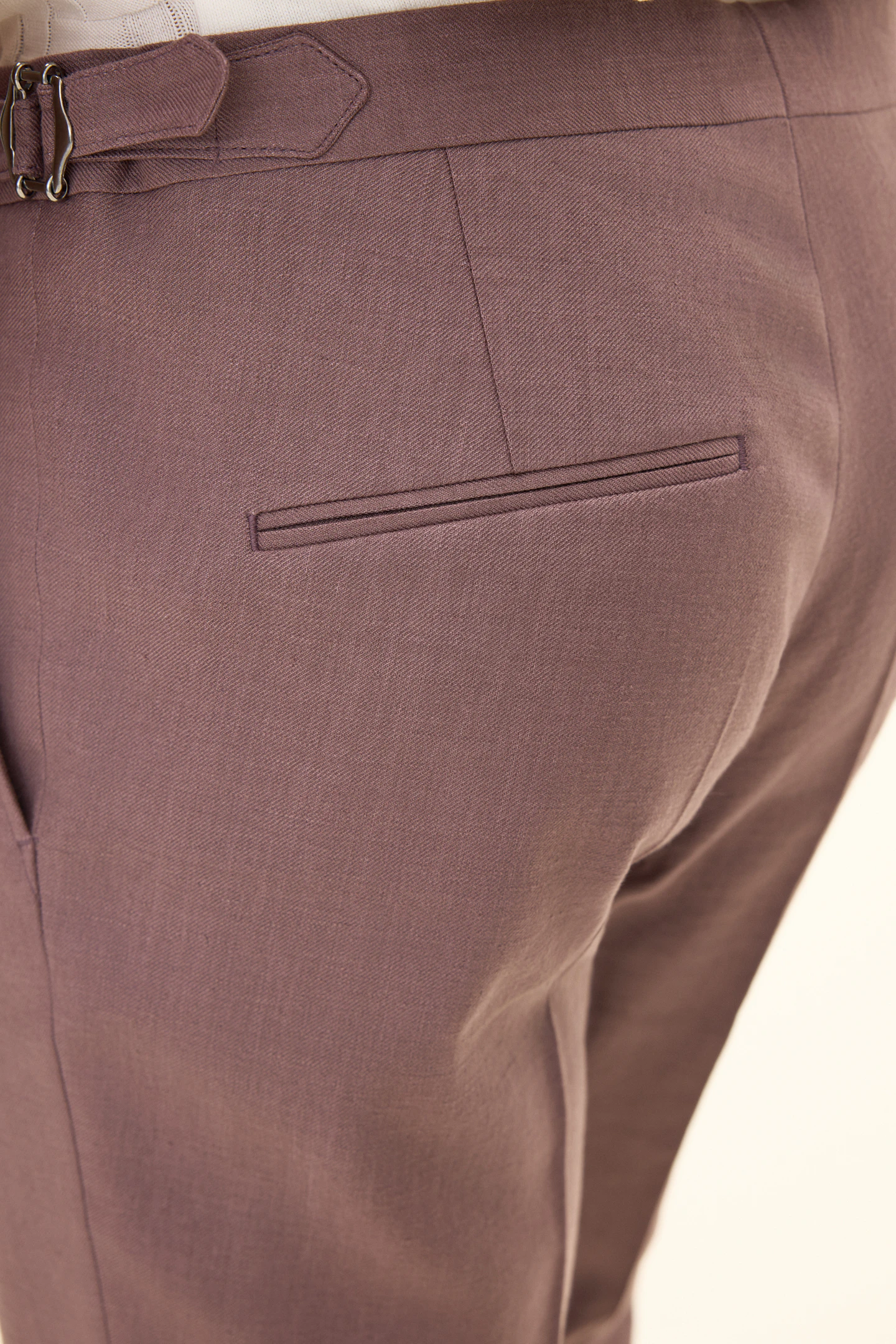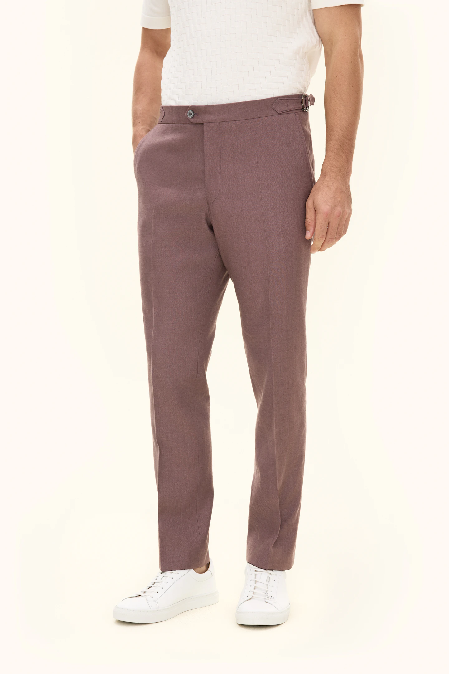 Twillbukser i linblanding. Med regular fit-passform og høy midje er de et allsidig tilskudd i garderoben, like passende til mer formelle som avslappede anledninger.