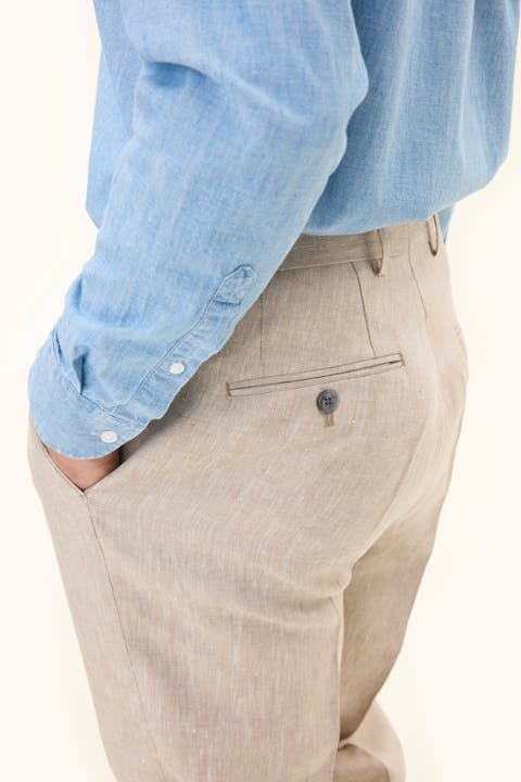 Laget av 100 % lin, har disse buksene en regular fit. De er designet med et tidløst ensfarget mønster og laget med vevd konstruksjon. En moderne klassiker som balanserer stil og komfort.