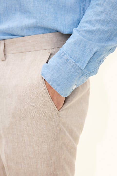 Laget av 100 % lin, har disse buksene en regular fit. De er designet med et tidløst ensfarget mønster og laget med vevd konstruksjon. En moderne klassiker som balanserer stil og komfort.