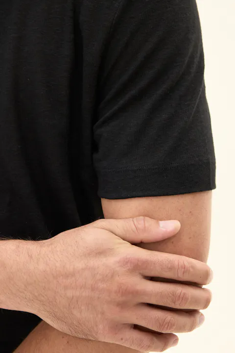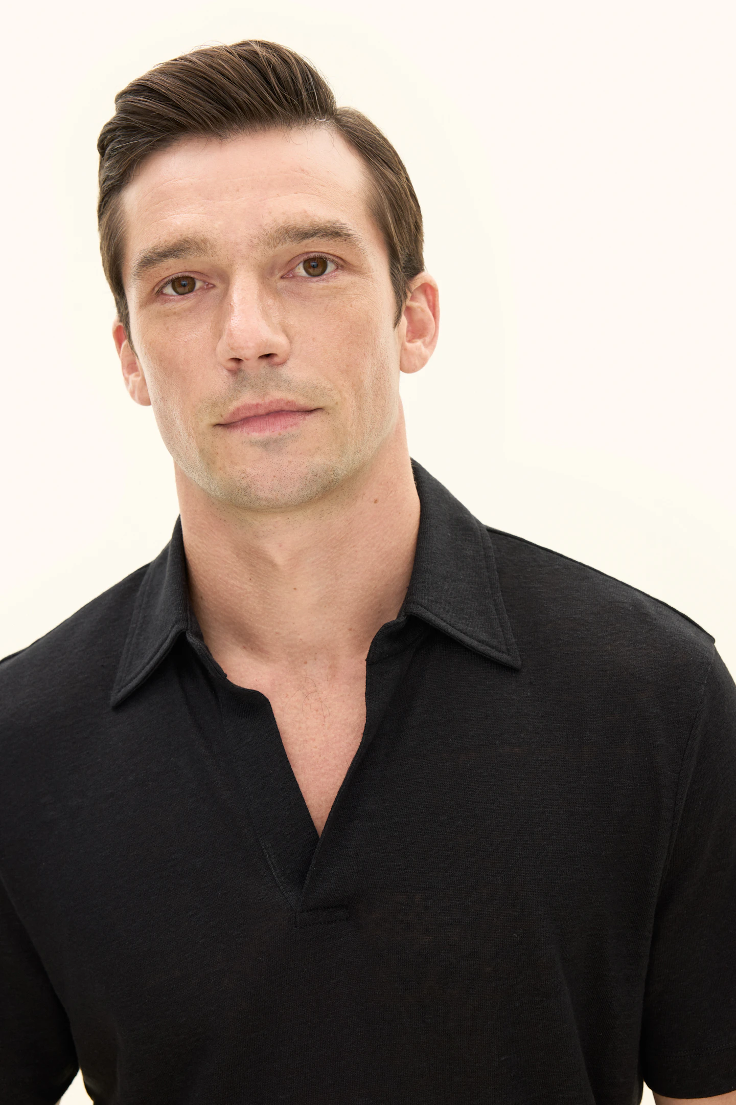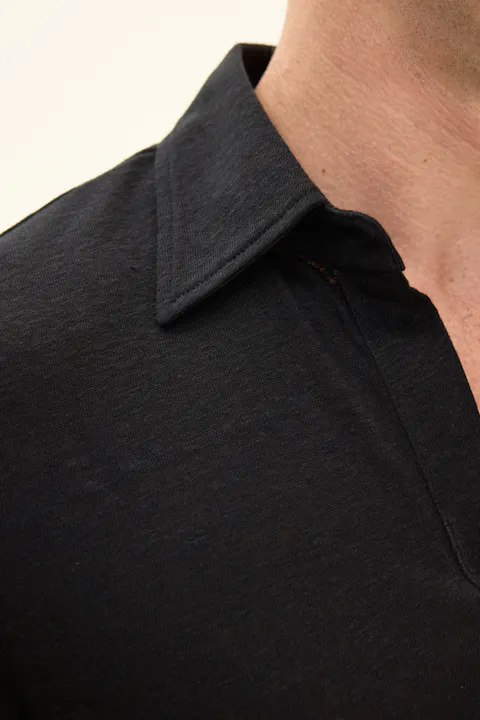 Kortermet trøye med krage i jersey, med en elegant, spiss krage og en noe dypere åpning foran. Designet er uten knapper, noe som gir et mer avslappet uttrykk. Materialet er i 100 % linkvalitet, som gjør plagget til en behagelig og sval sommerfavoritt. Et flott plagg til ulike typer bukser, men det kan like gjerne brukes under en uformell dress eller blazer.