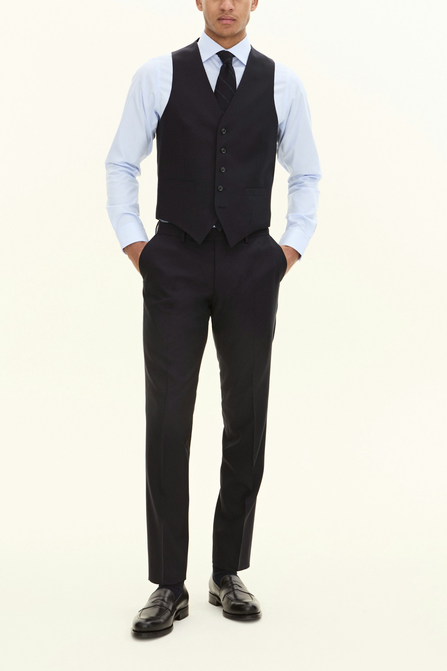 Vår tradisjonelle vest laget av klassisk, elegant og tynn super 120´s ull fra veveriet Vitale Barberis Canonico. Viskosekledd rygg med spenne.