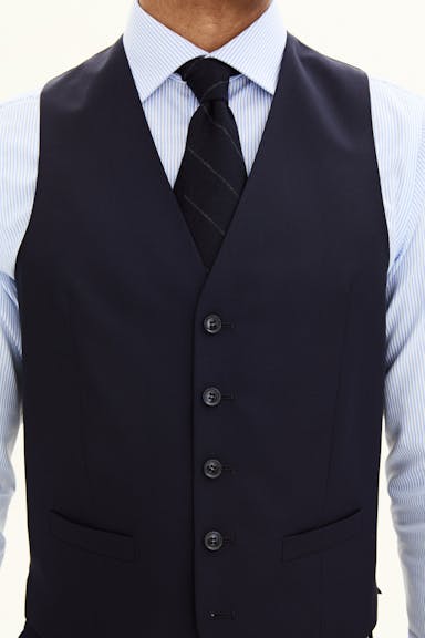Vår tradisjonelle vest laget av klassisk, elegant og tynn super 120´s ull fra veveriet Vitale Barberis Canonico. Viskosekledd rygg med spenne.
