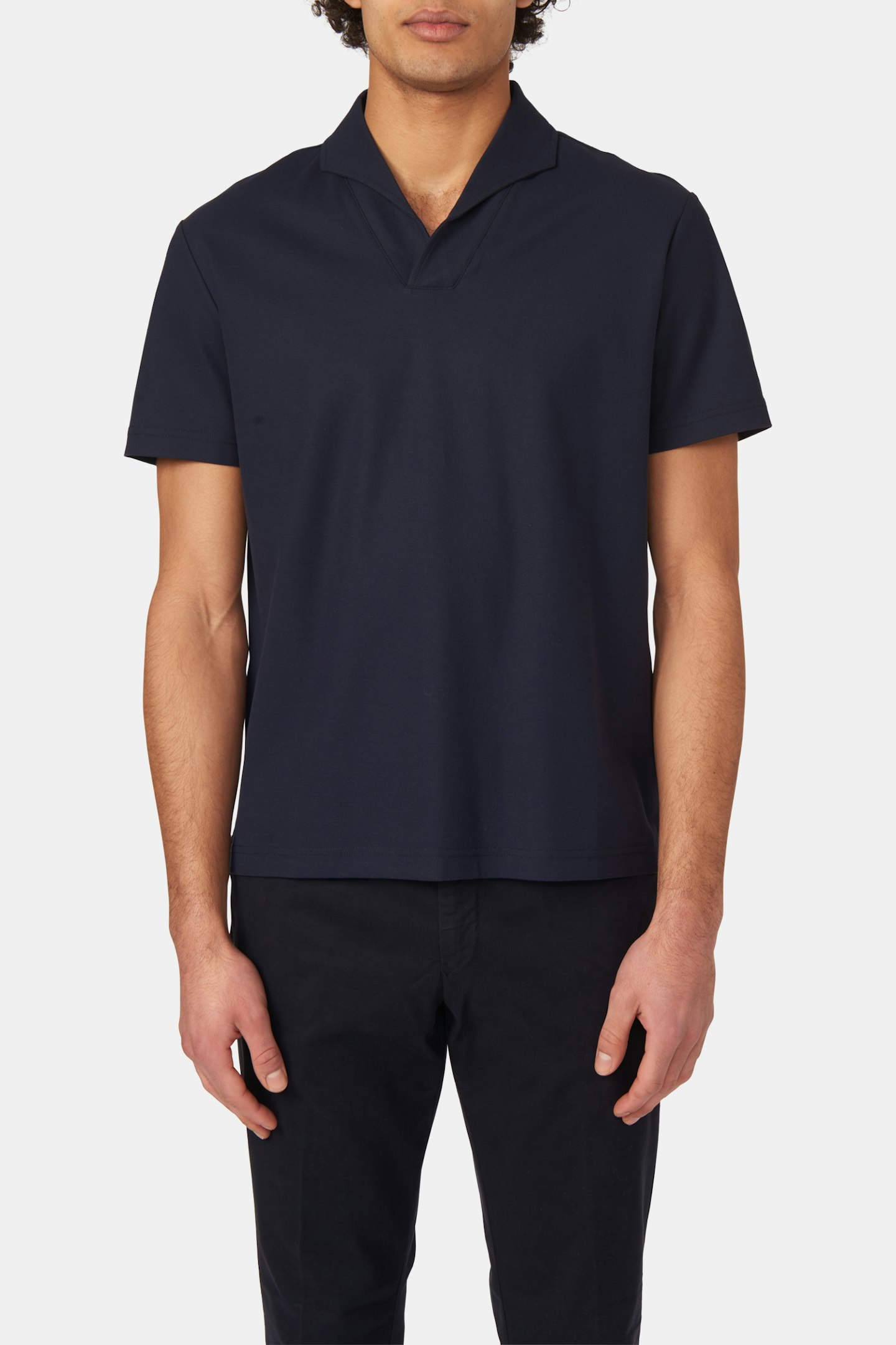 Kortermet pique med knappeløs krage. Laget av 100% bomull.