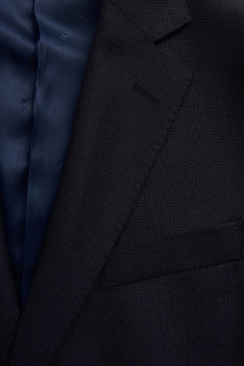 Formell blazer med myk oppbygd skulder, helfôr og en rak silhuett. Vår siste tolkning av club-blazeren i ren teksturert ull.