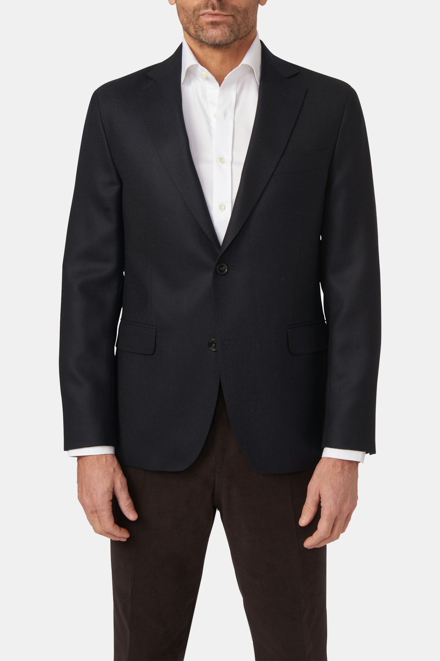 Formell blazer med myk oppbygd skulder, helfôr og en rak silhuett. Vår siste tolkning av club-blazeren i ren teksturert ull.