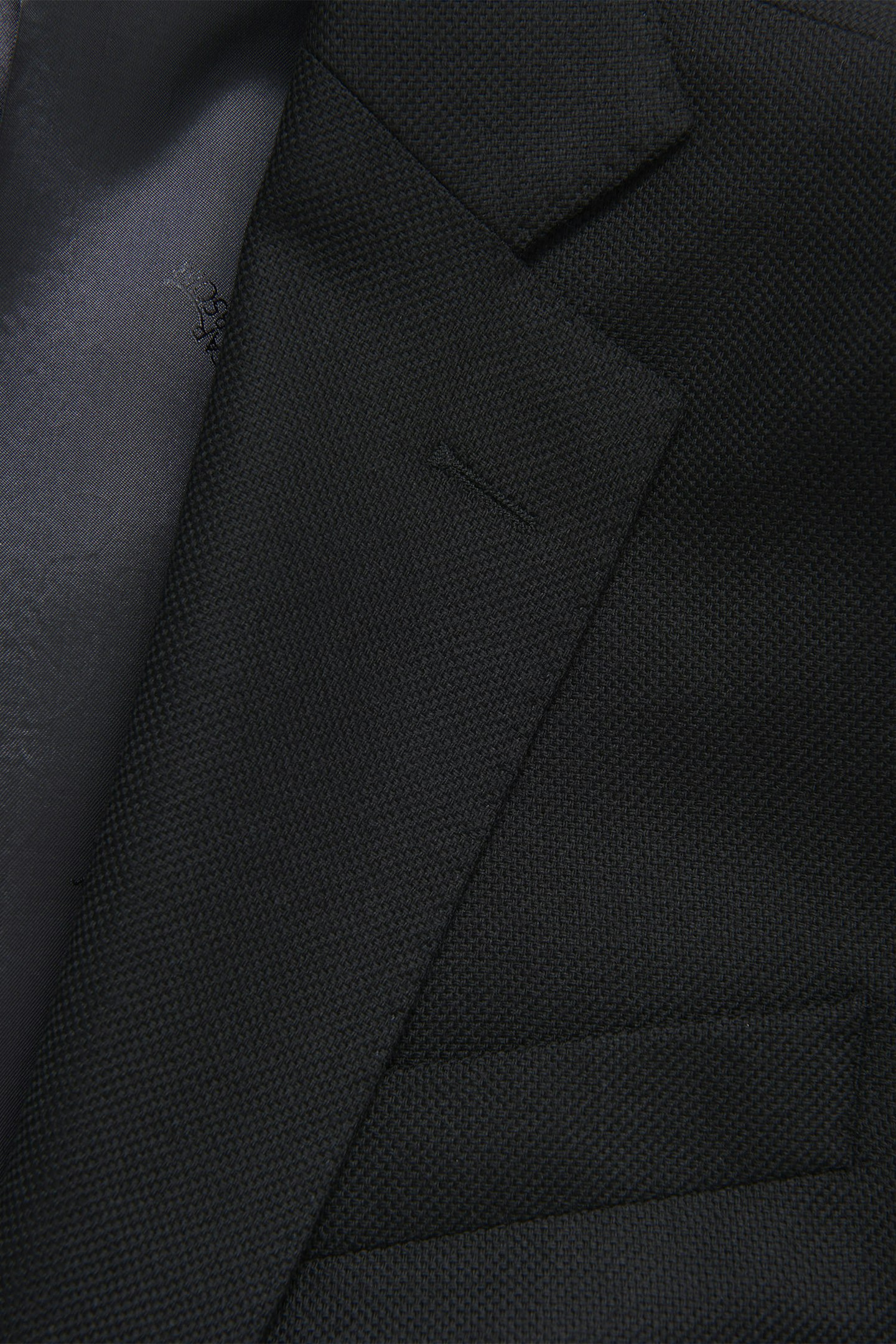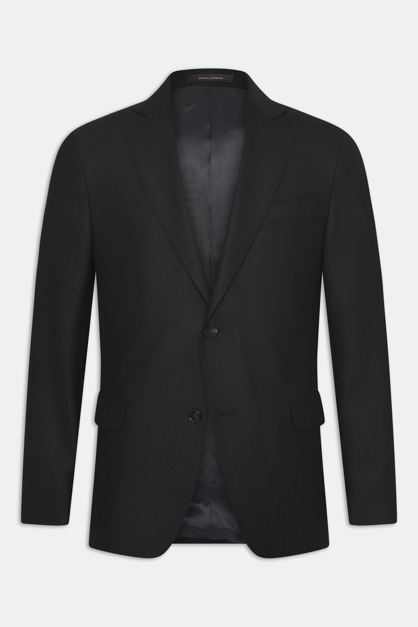 Formell blazer med myk oppbygd skulder, helfôr og en rak silhuett. Vår siste tolkning av club-blazeren i ren teksturert ull.