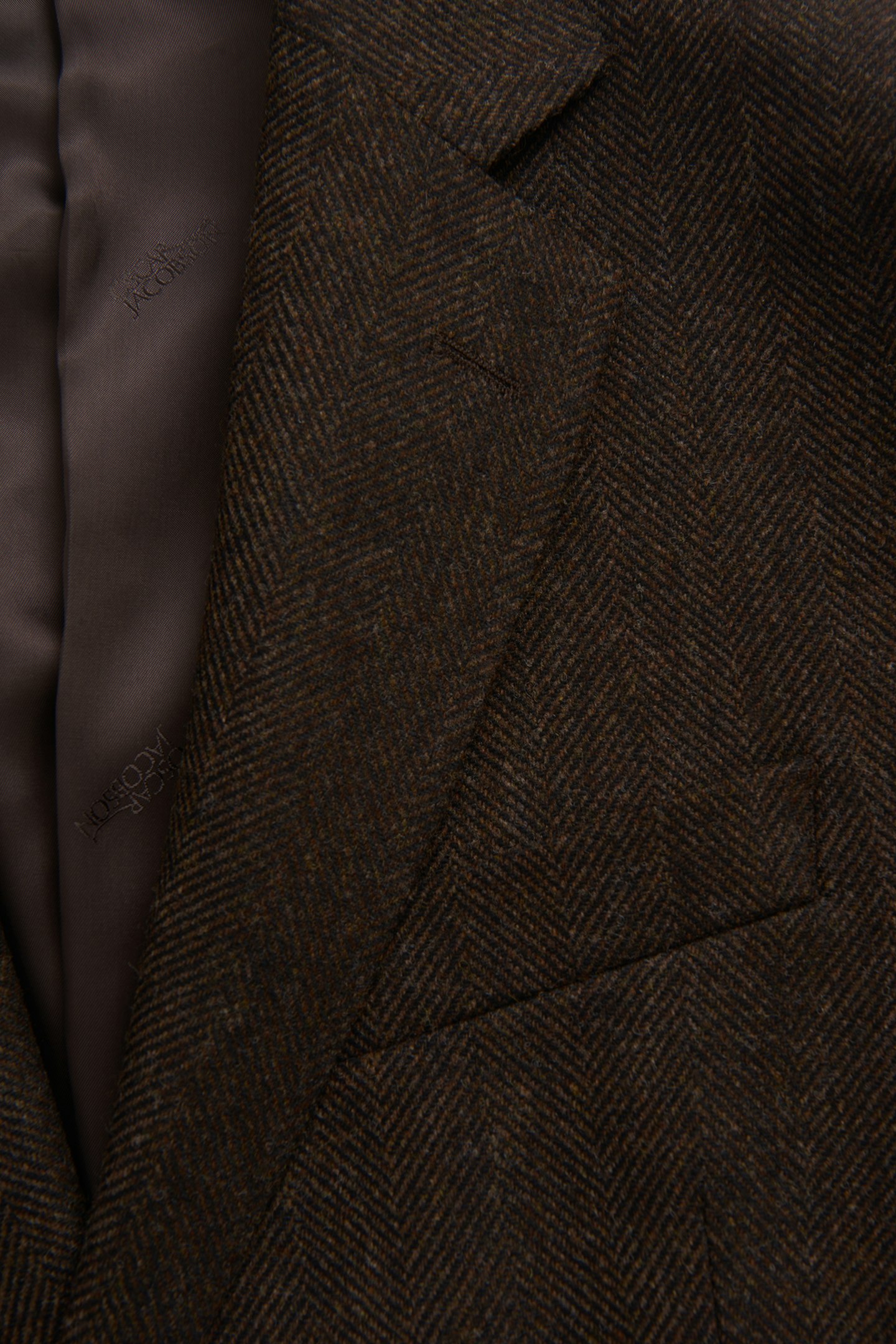Dette produktet er laget av et fiskebensvevd børstet ullstoff fra Abraham Moon & Sons.