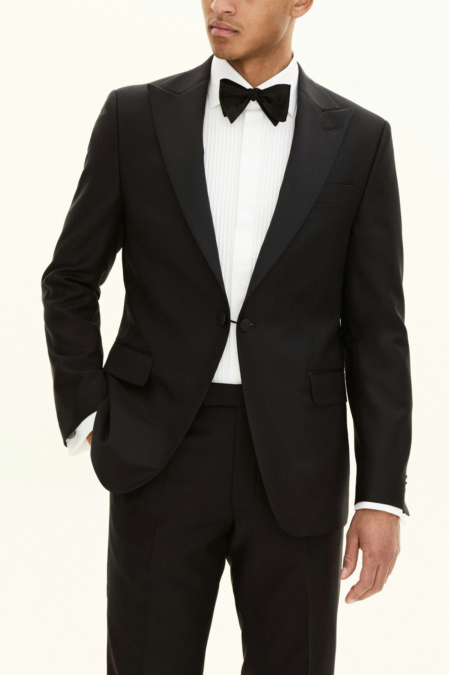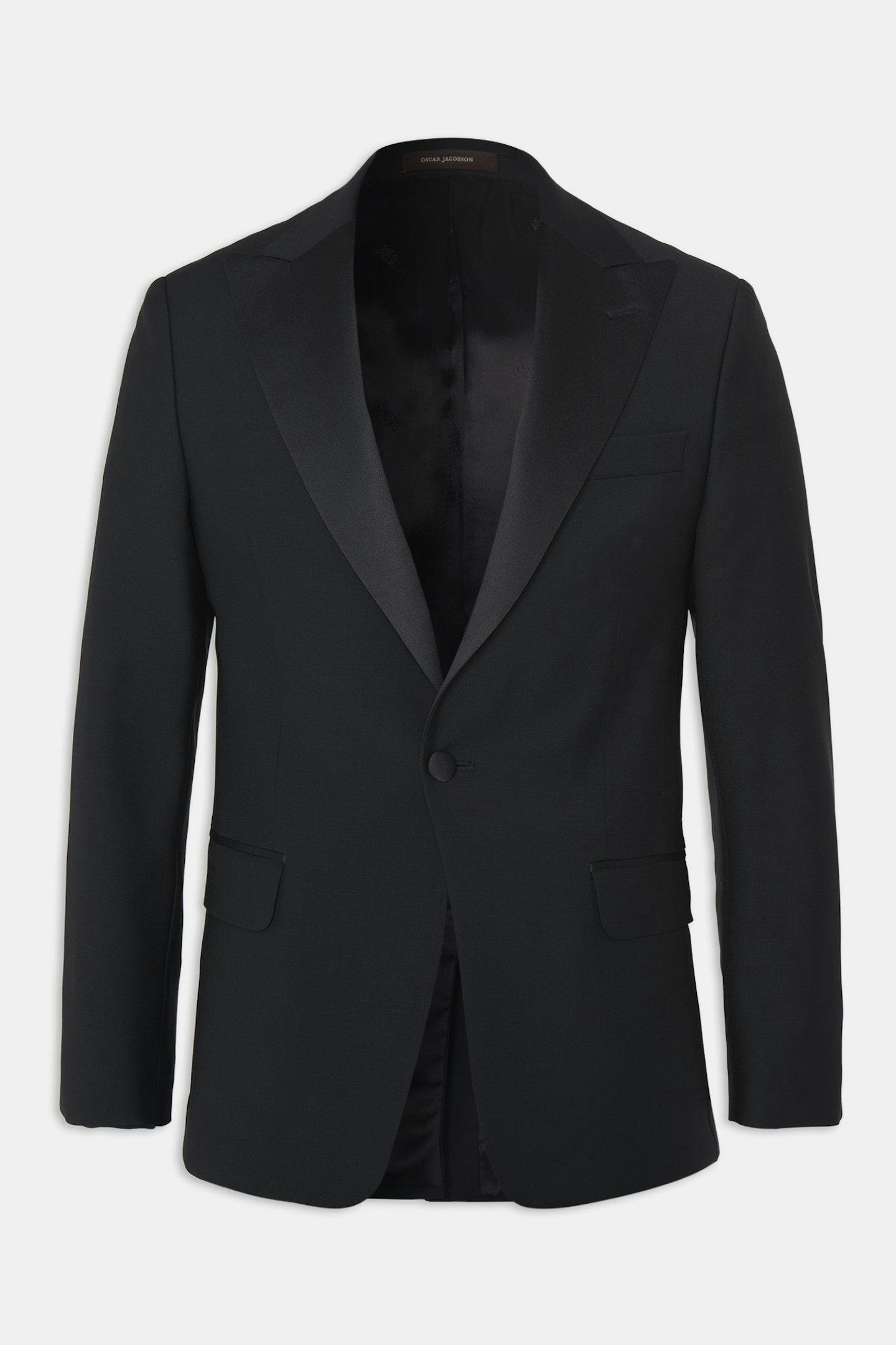 Helkropps smoking med spisse silkeslag. Sammenlignet med vår smalere smokingmodell Elder har Frampton en mer tradisjonell passform og klassisk snitt. Laget av et veldig fint vevd stoff av 100% ull.