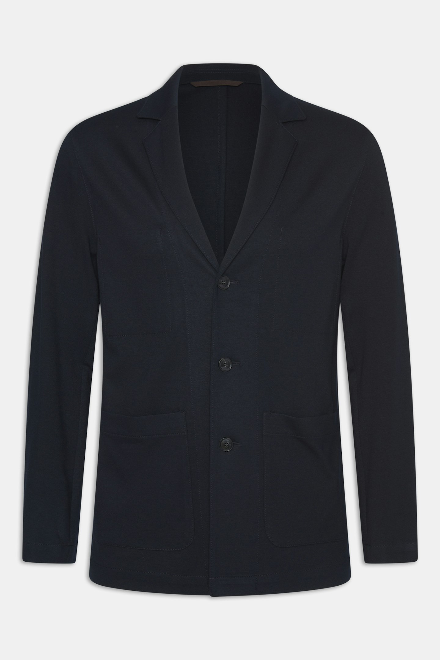 ”Neste generasjons blazer”. Ufôret og ukonstruert skjortejakke med blazerslag. Utenpåliggende lommer og doble innerlommer. Her i en teknisk jersey stretch.