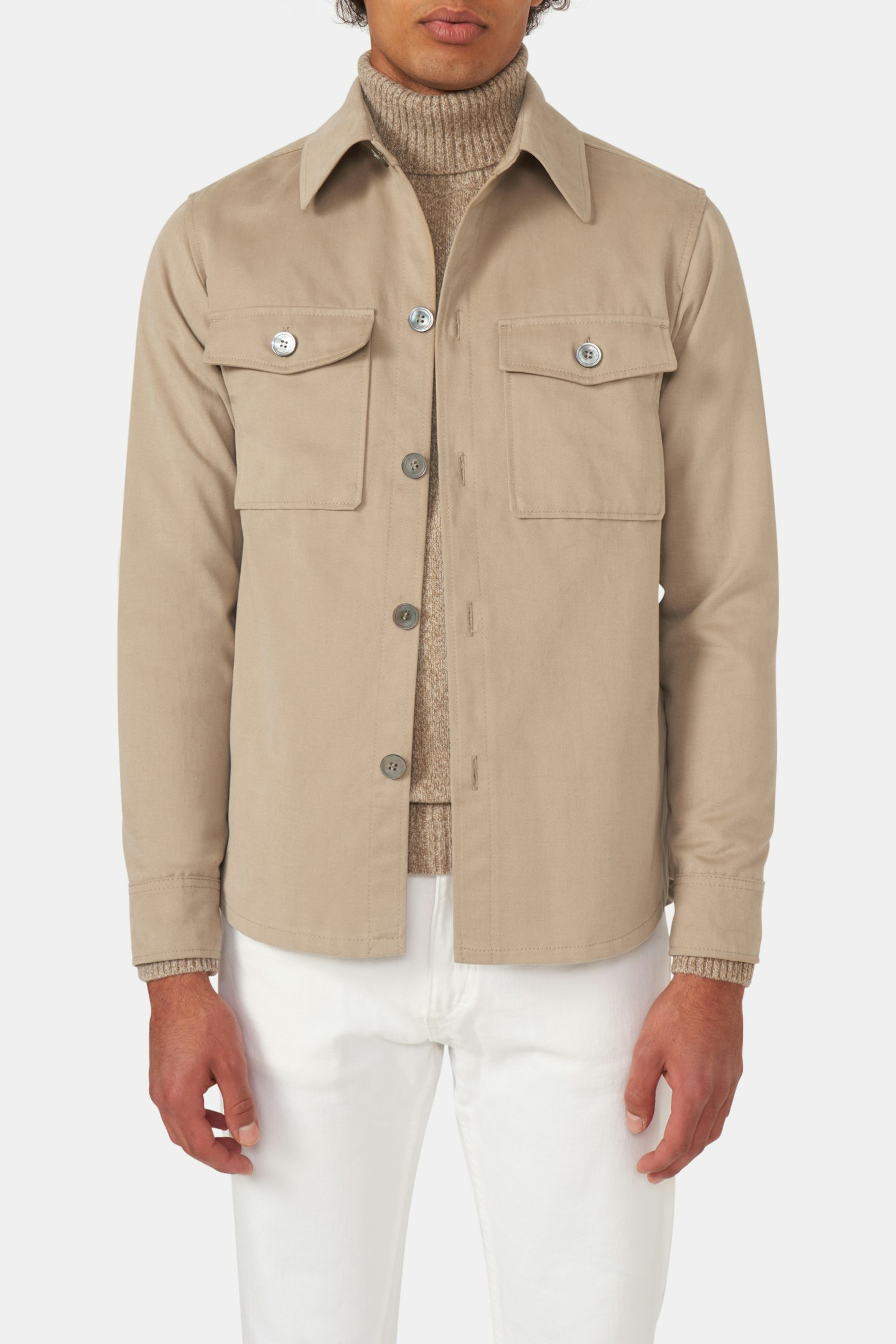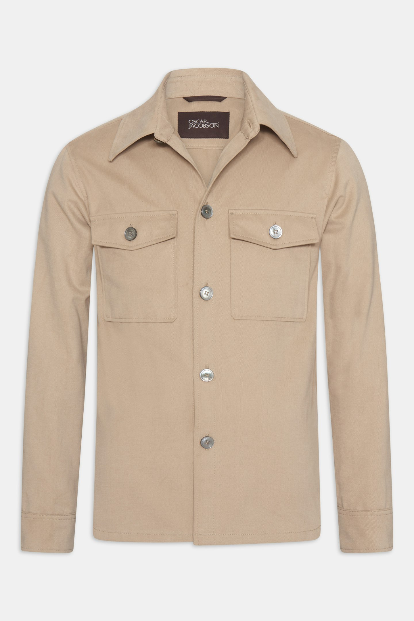 Skjortejakke i rett modell med tyngre bomullsstoff som har en myk følelse og minner om mollskinn.