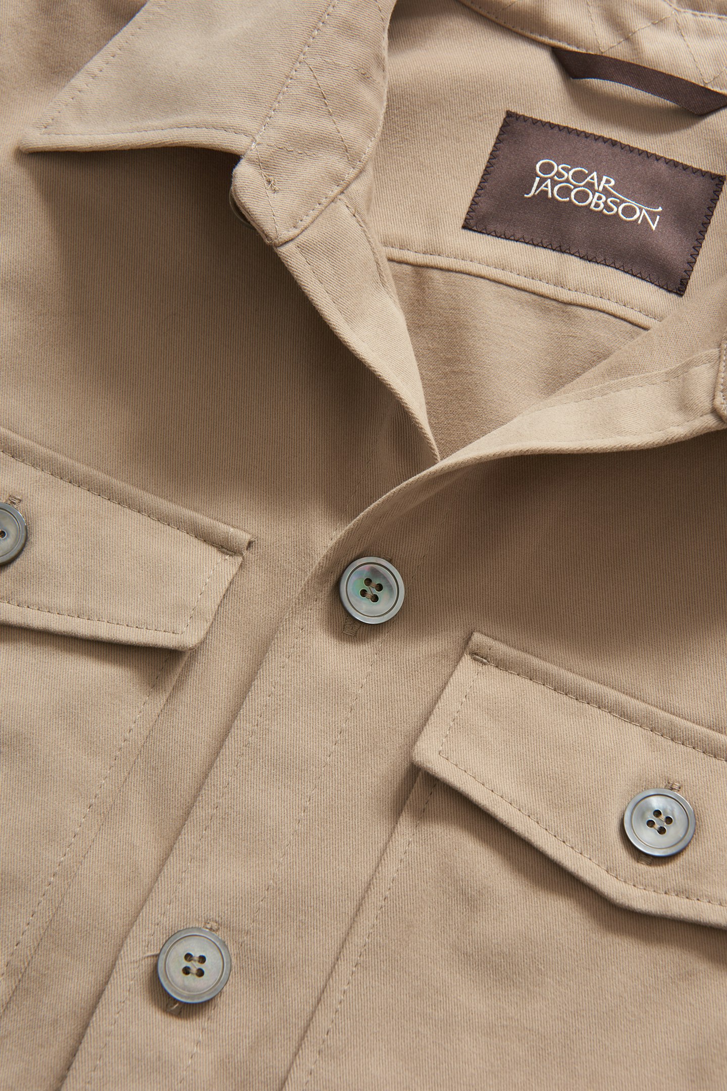 Skjortejakke i rett modell med tyngre bomullsstoff som har en myk følelse og minner om mollskinn.