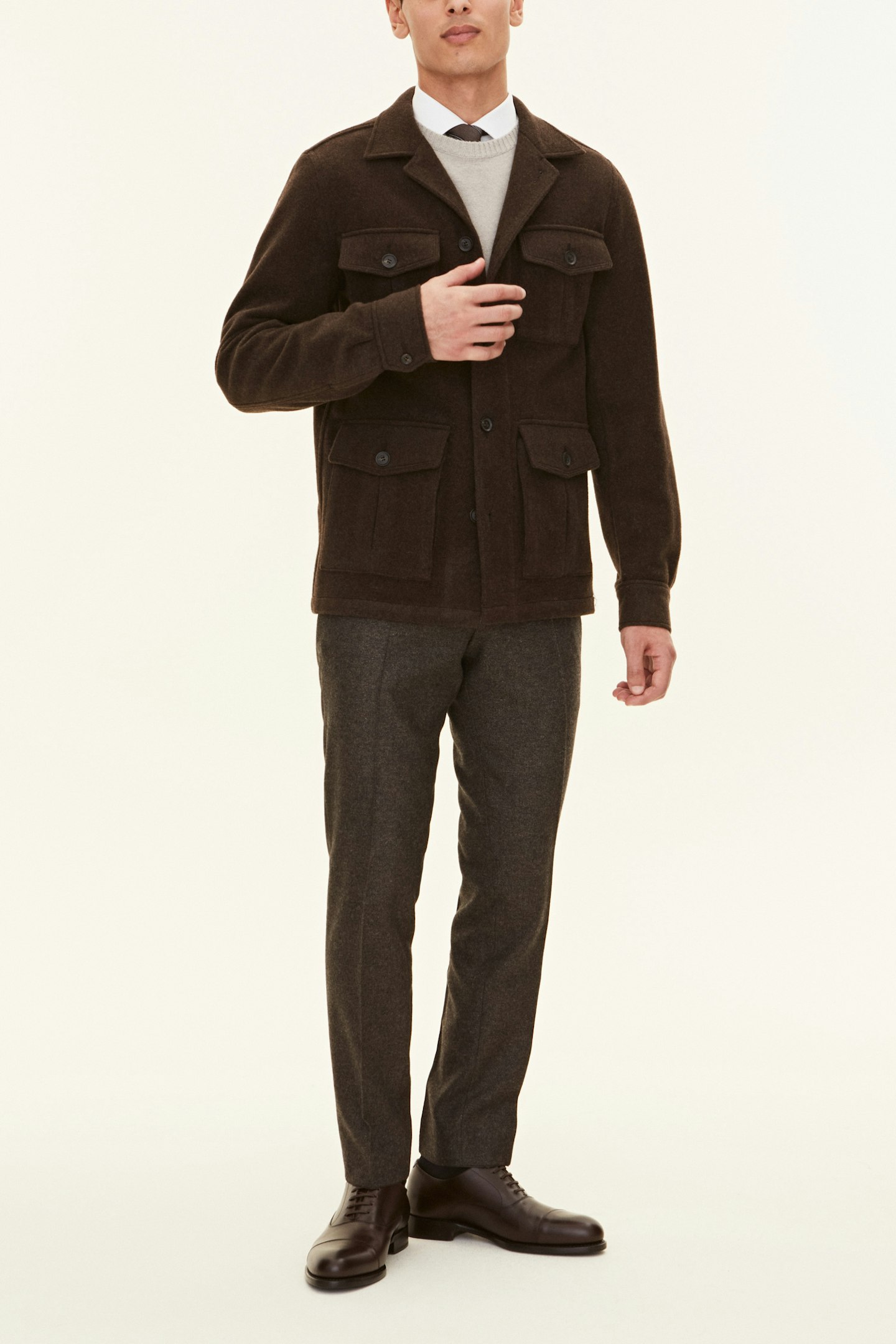 En perfekt balanse mellom funksjonalitet og eleganse, laget av en varm ullblanding, har denne overshirten en regular fit. Perfekt både til en avslappet og sofistikert stil.