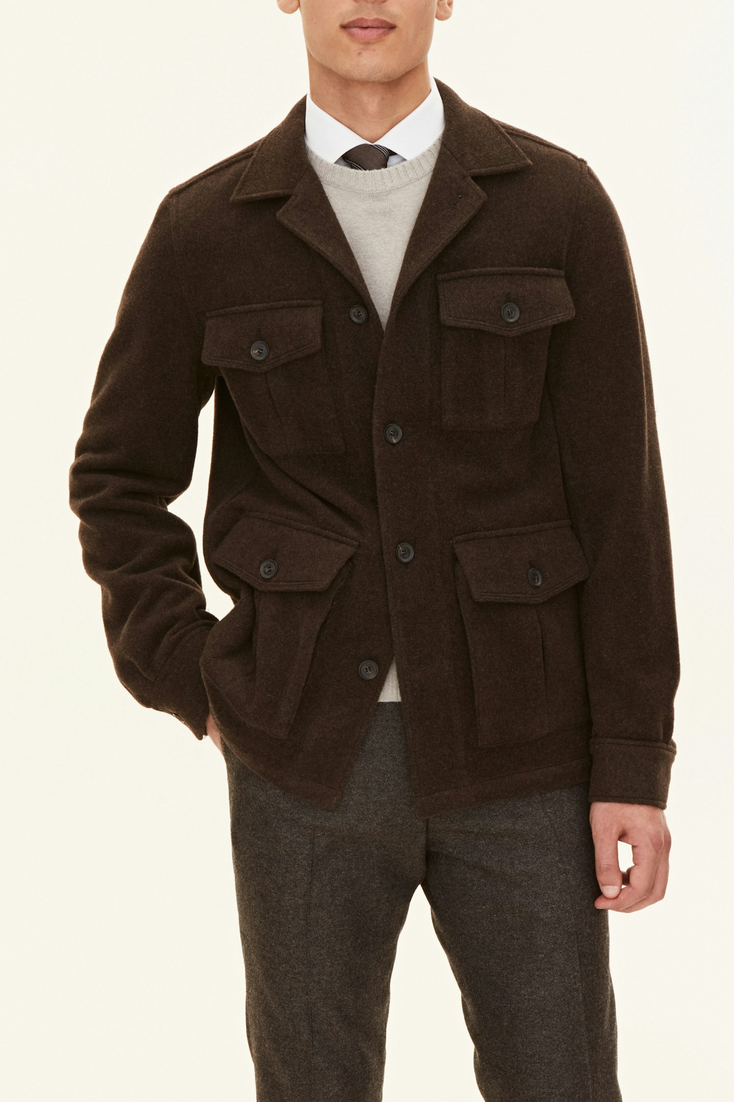 En perfekt balanse mellom funksjonalitet og eleganse, laget av en varm ullblanding, har denne overshirten en regular fit. Perfekt både til en avslappet og sofistikert stil.