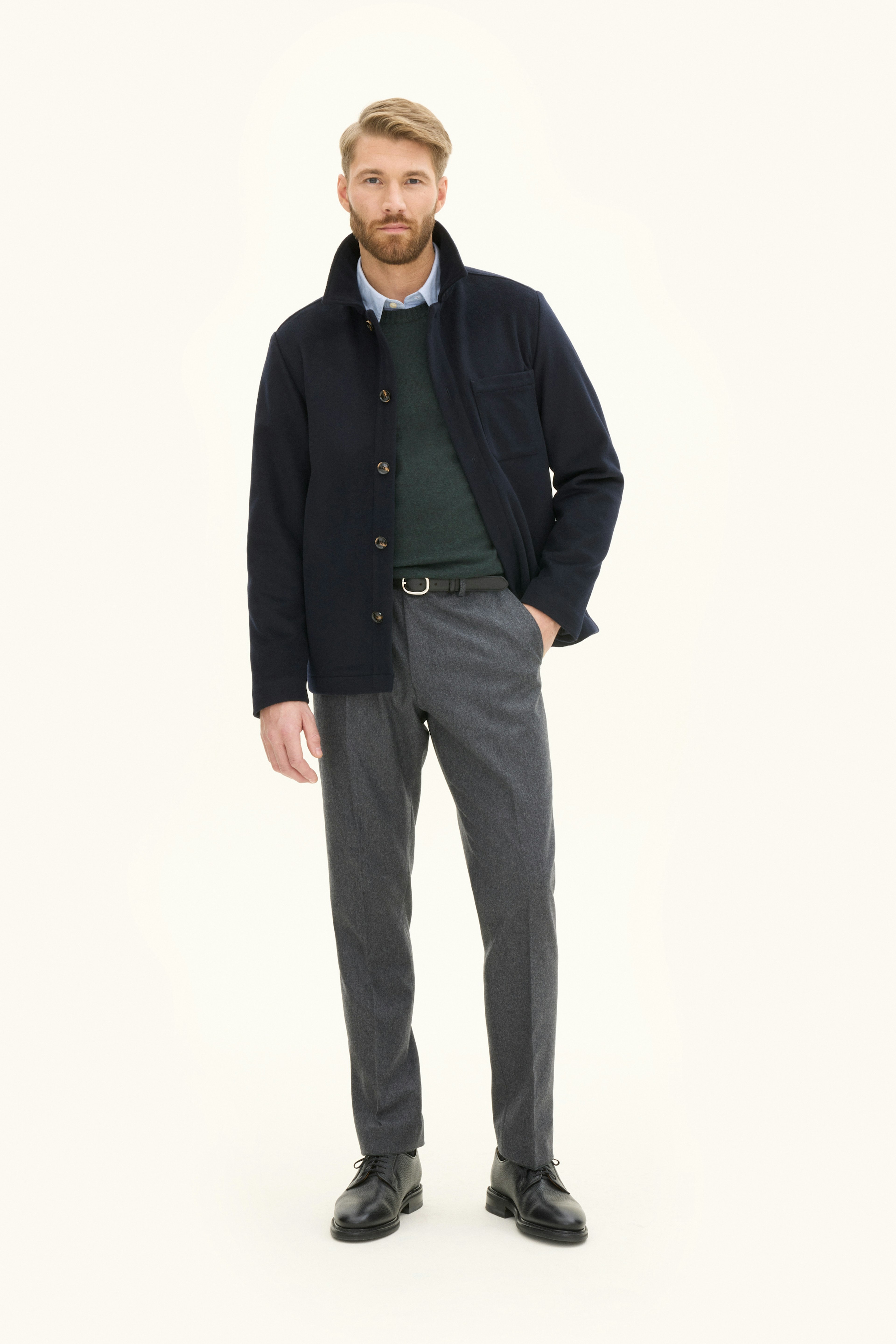Overshirt laget av en eksklusiv ullblanding med en vellaget regular fit passform. Et nøye utformet plagg som balanserer klassisk skreddersøm med en moderne silhuett. Perfekt for både profesjonelle anledninger og uformelle anledninger der stil er prioritert.