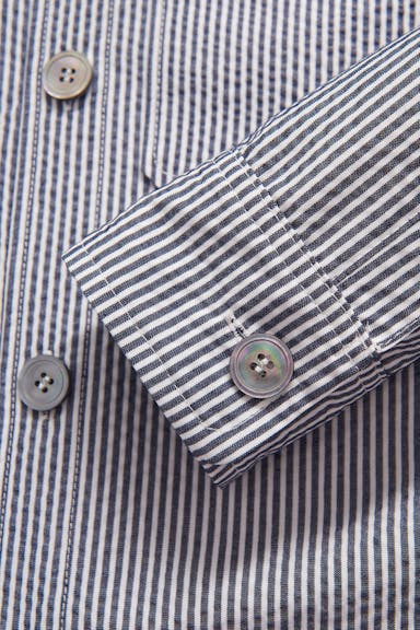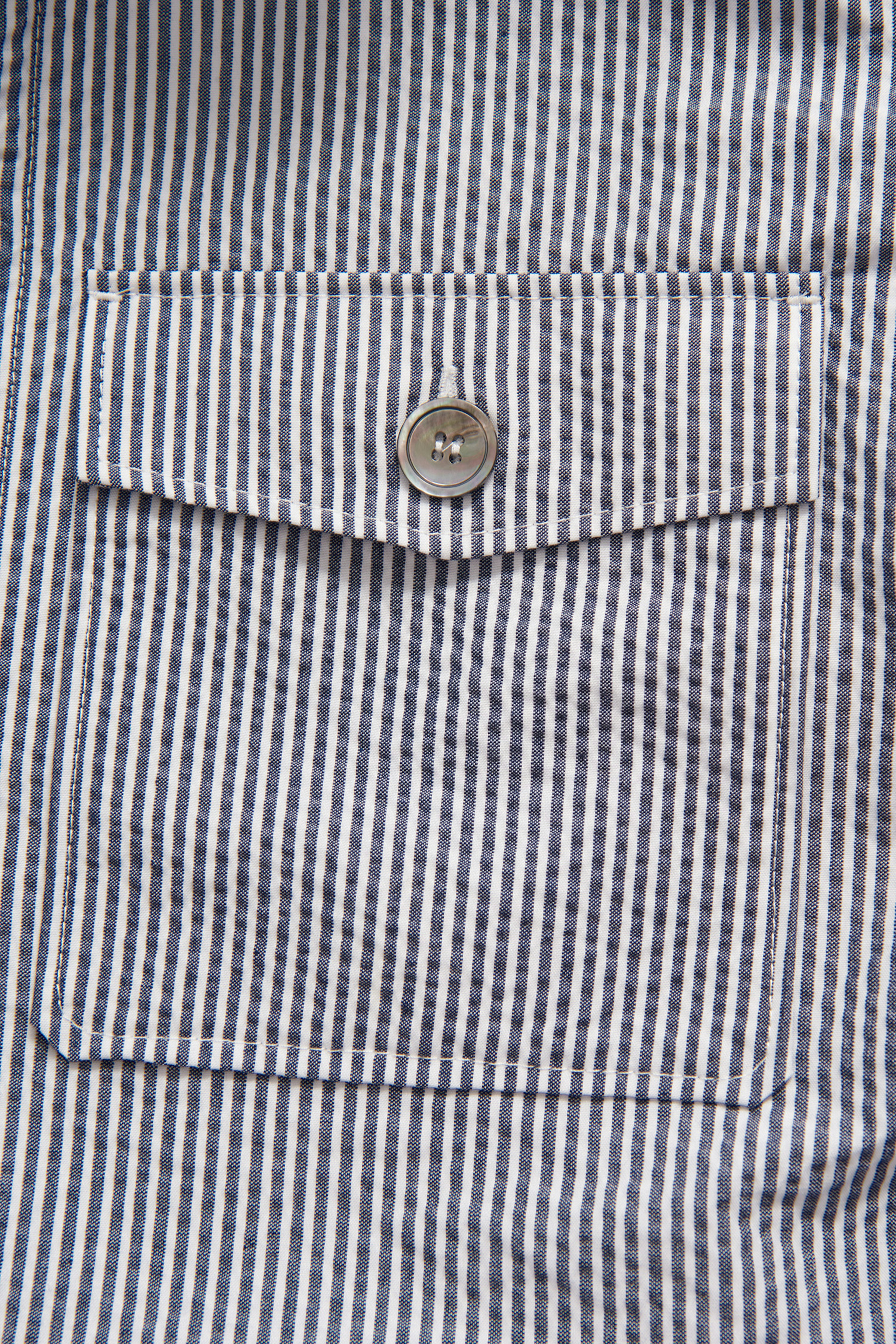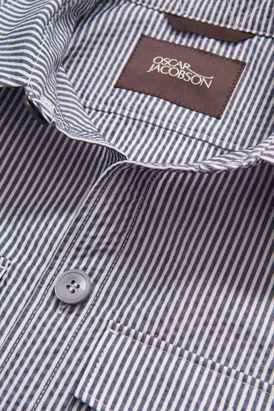 Skjortejakke i regular fit med utenpåliggende brystlommer utstyrt med lommeklaff og ekte perlemorknapper. Laget av en stripete bomullsblanding.