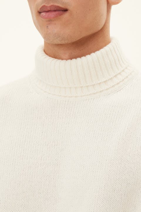 Pologenser med dobbel krage/rullhals. Denne kragen kan brukes både brettet ned eller brettet opp. Laget i en myk blanding av ull, kasjmir og viskose. Strikket i 7gg med 2-lags, to tvinnede tråder, som gir et sterkere plagg som er perfekt for lag på kjølige dager.