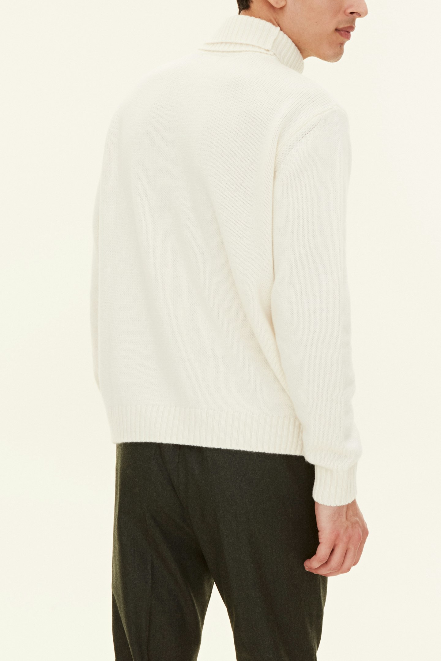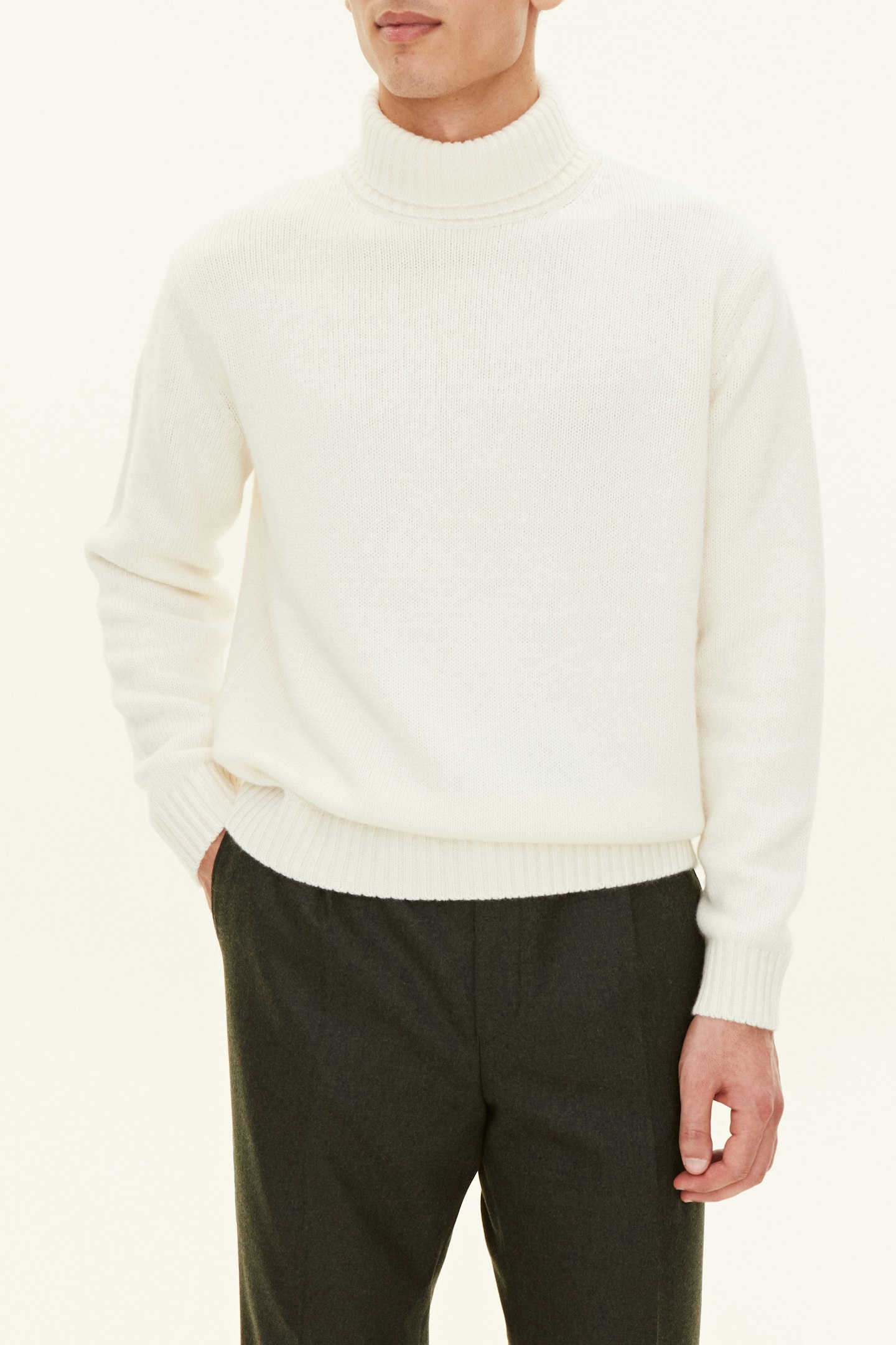 Pologenser med dobbel krage/rullhals. Denne kragen kan brukes både brettet ned eller brettet opp. Laget i en myk blanding av ull, kasjmir og viskose. Strikket i 7gg med 2-lags, to tvinnede tråder, som gir et sterkere plagg som er perfekt for lag på kjølige dager.