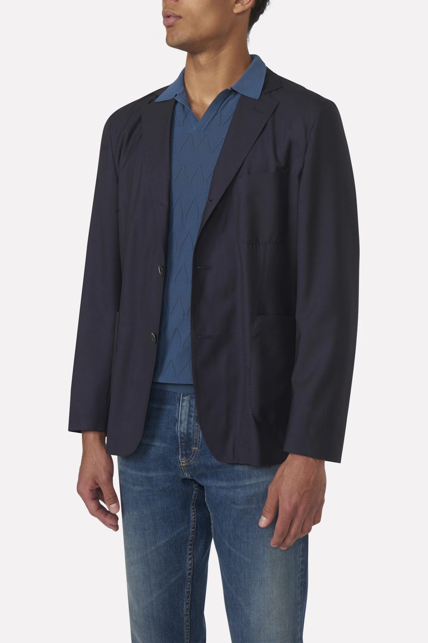 <div> Blazer med tre knapper i normal passform. Helt uformet med kun fôr i ermene. Minner om en cardigan, utstyrt med utvendige lommer presentert i en blanding av ull og silke.</div>