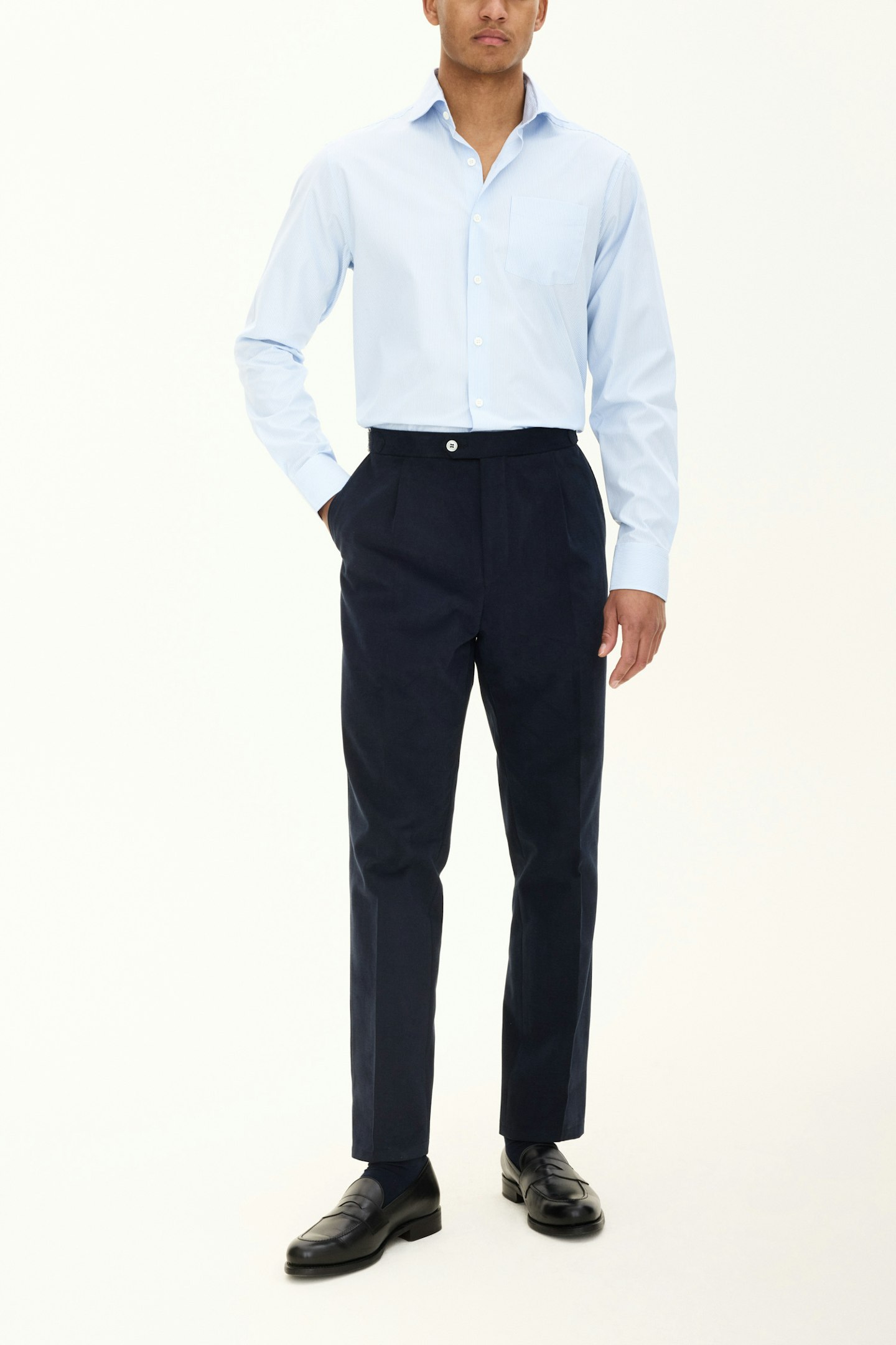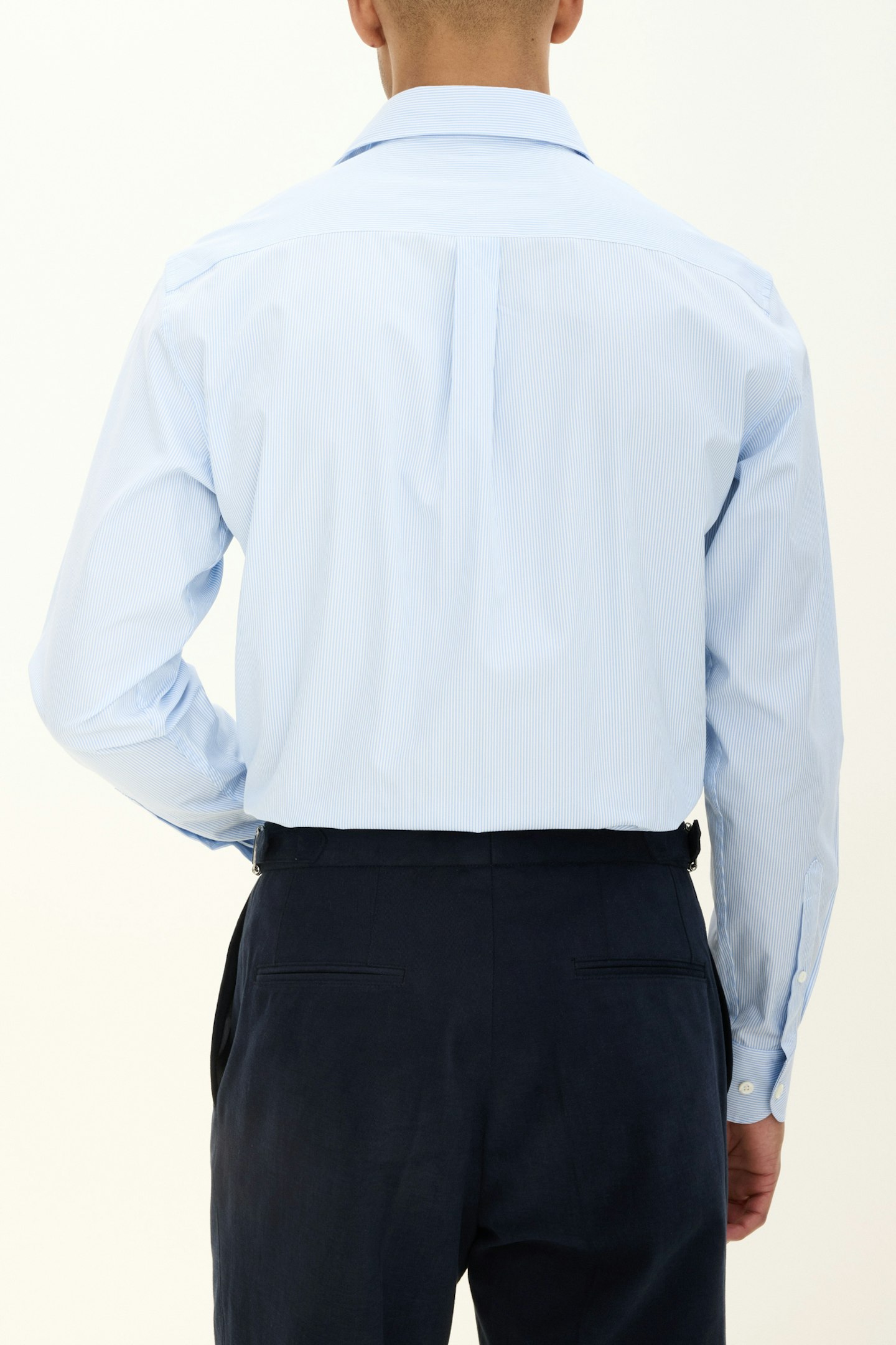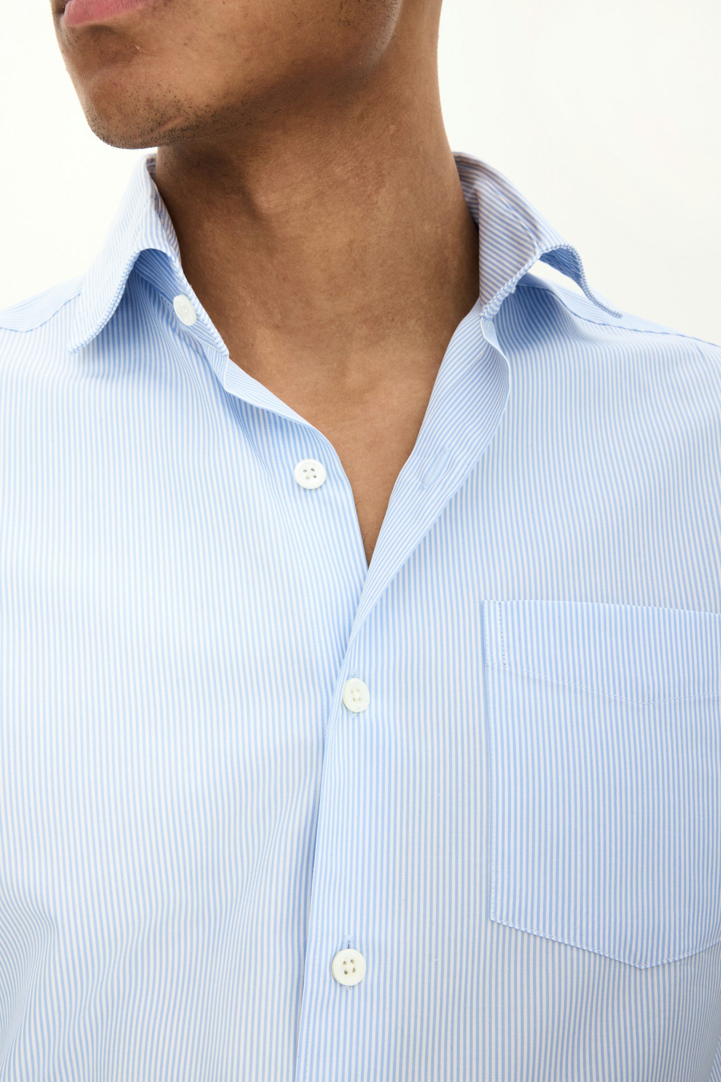 Vår regular fit poplin skjorte med wide spread krage er et allsidig plagg for enhver garderobe. Skjorten har et stilig stripet mønster og er laget av 100% bomull.