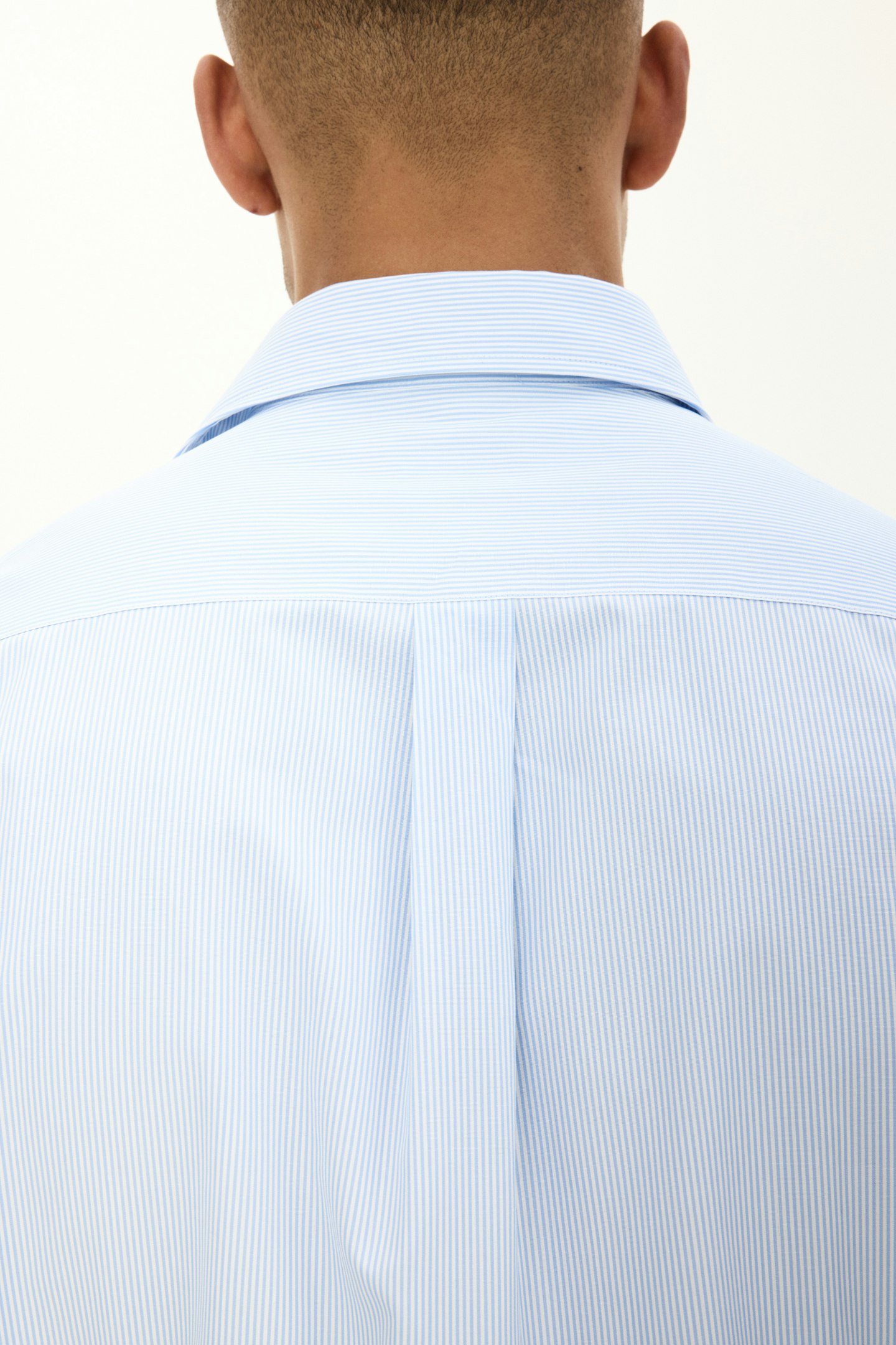 Vår regular fit poplin skjorte med wide spread krage er et allsidig plagg for enhver garderobe. Skjorten har et stilig stripet mønster og er laget av 100% bomull.
