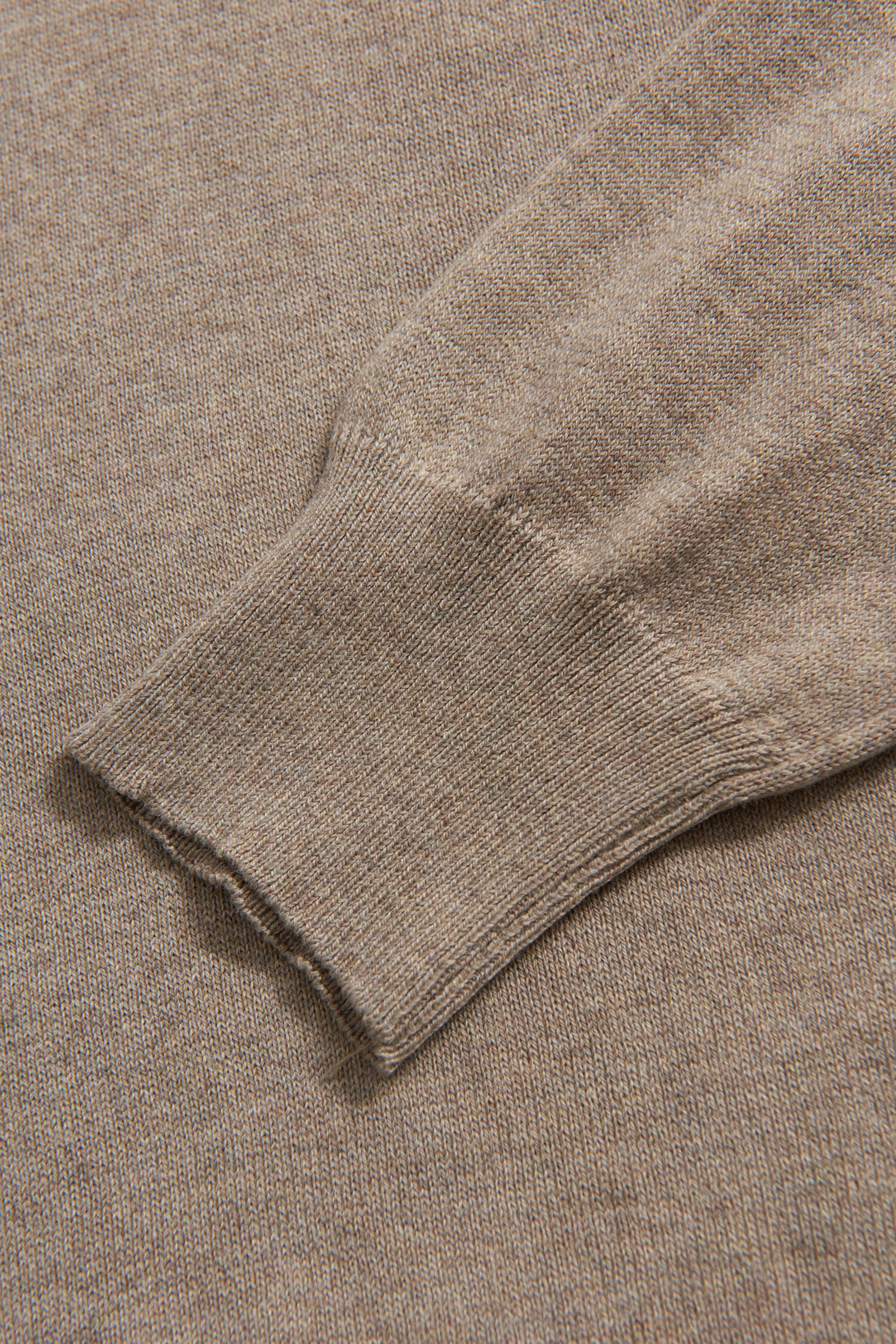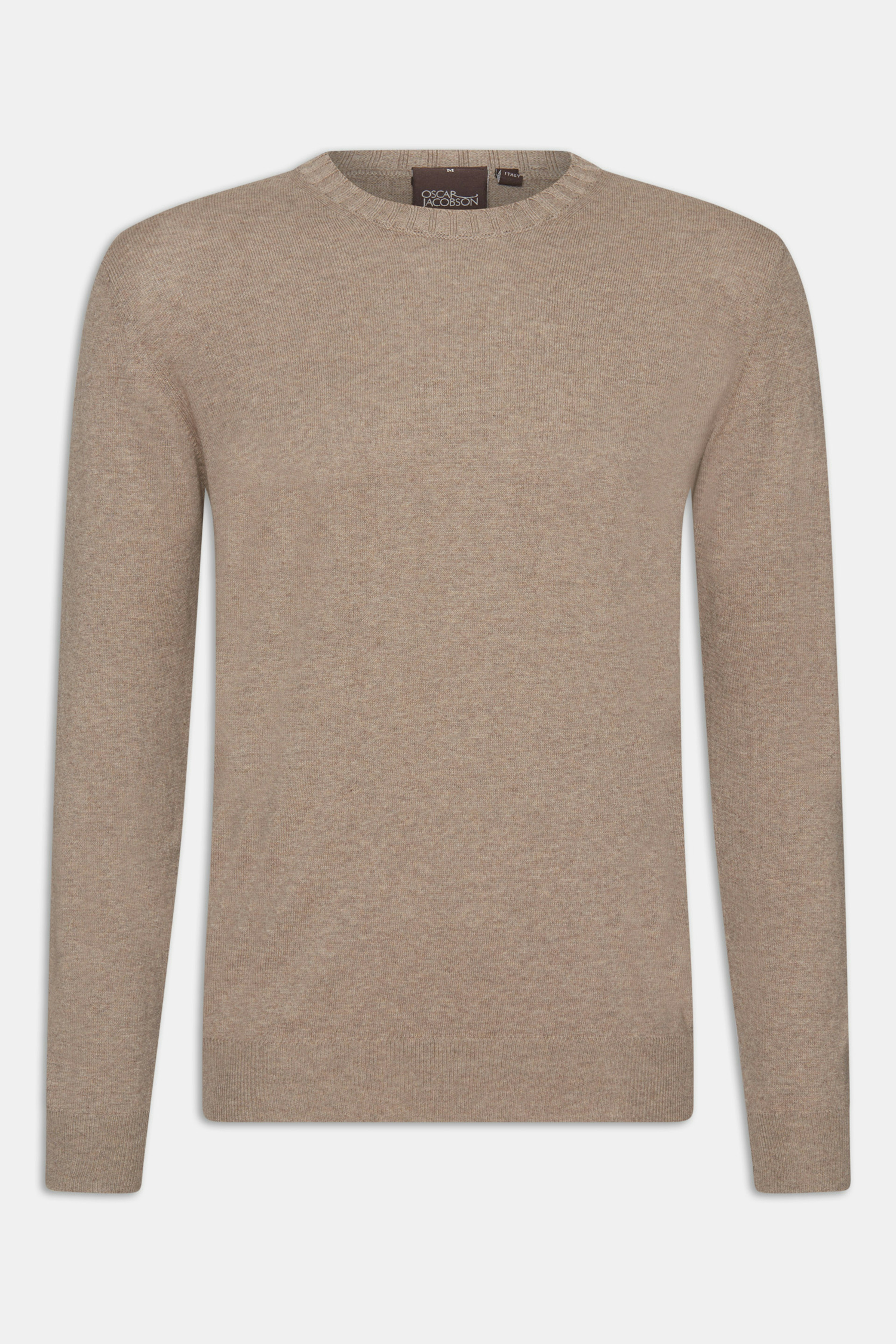 Genser med rund hals laget av 12gg bomull. Ribbestrikket krage og mansjetter.