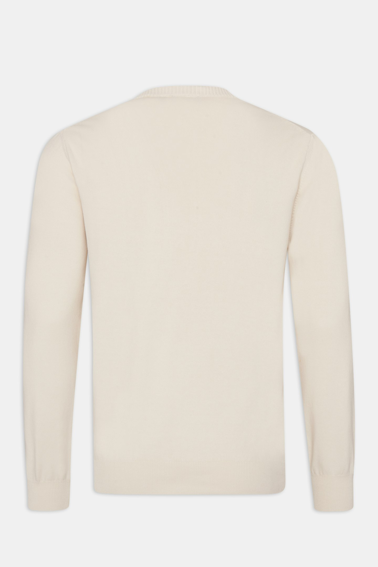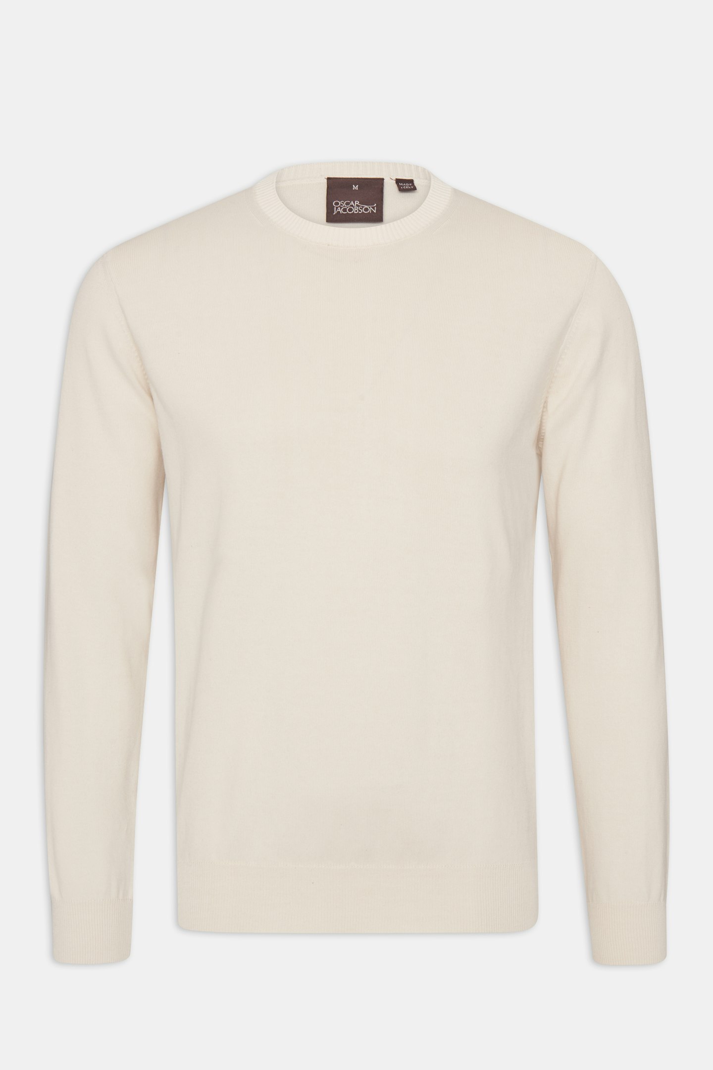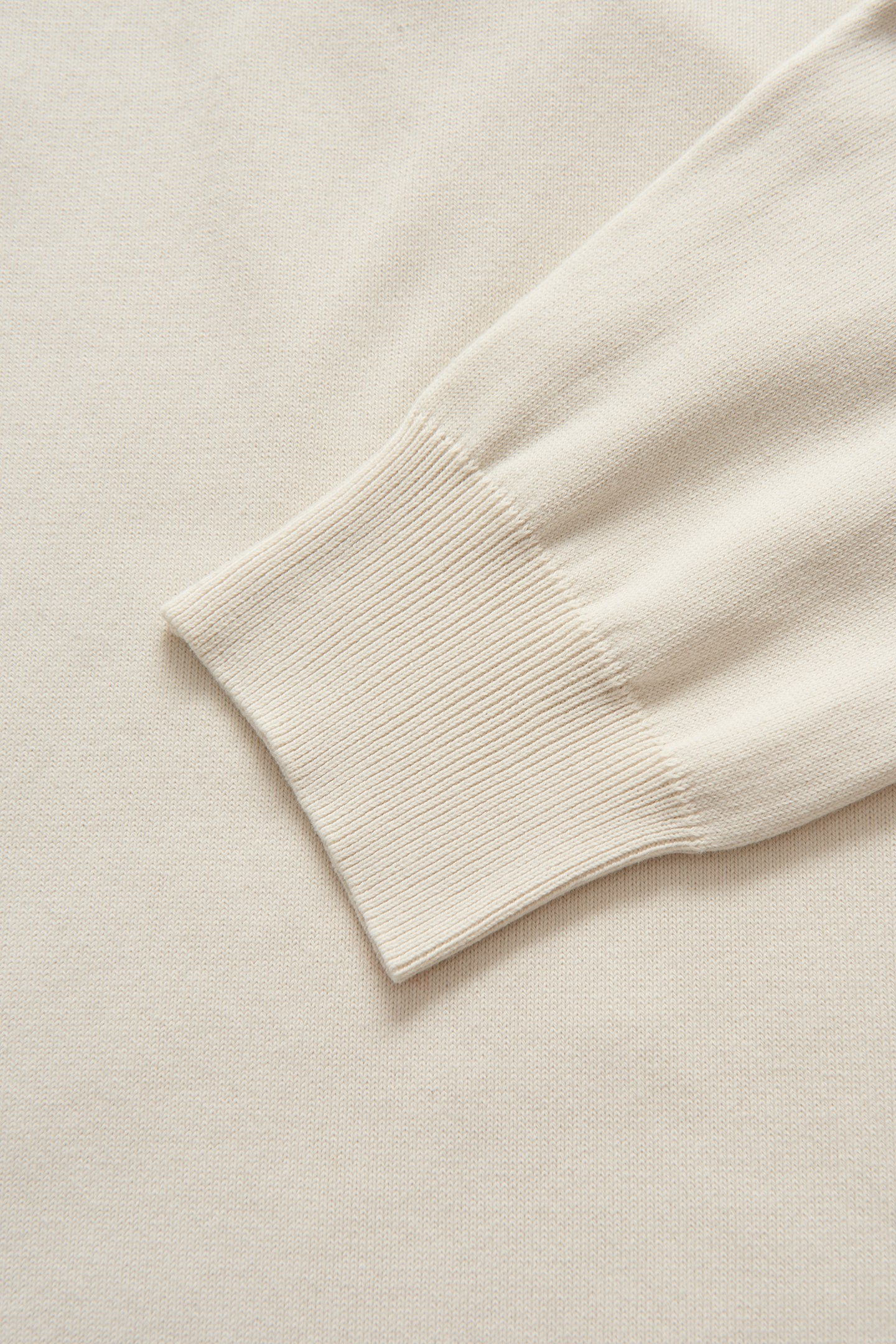 Rundhalset strikket genser utstyrt med ribbestrikket krage. Laget av et tynt bomullsstoff som passer perfekt om sommeren.