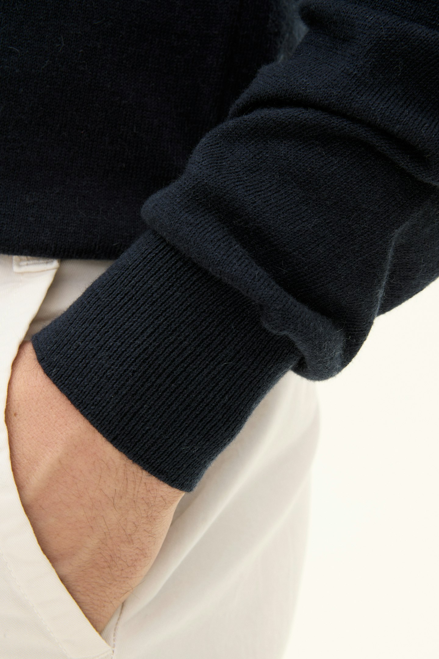 Denne genseren av bomull og kasjmir er et fantastisk mykt plagg med en enkel krage som er 2x2 ribbestrikket. Kragen er strikket med dobbelt garn for en jevn og stilfull finish. Genseren er strikket med 12gg, og fungerer både over en t-skjorte eller skjorte og under en blazer.